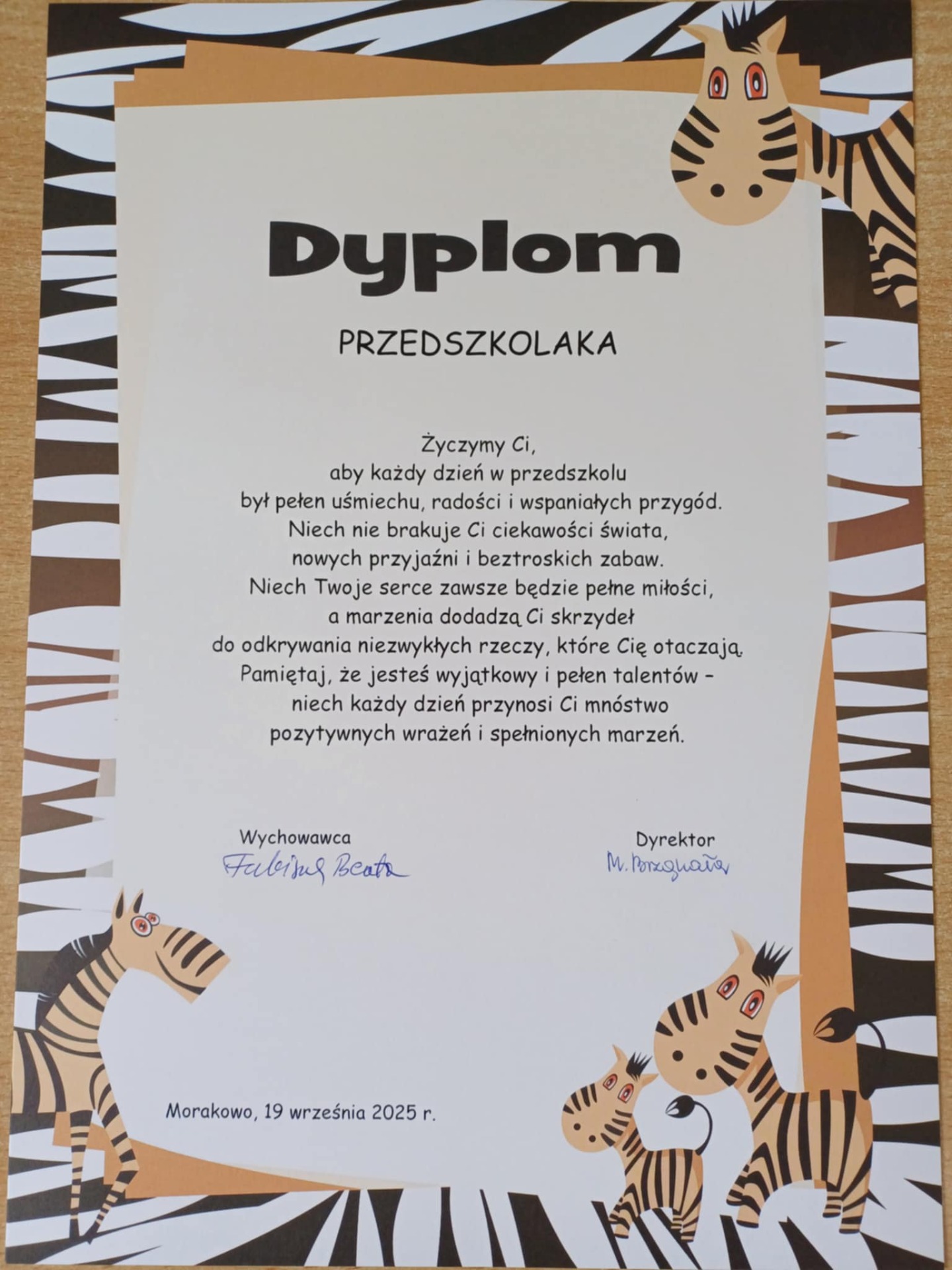 W tym roku Ogólnopolski Dzień Przedszkolaka obchodziliśmy 19 września. Od ponad 10 lat to święto jest wpisane w kalendarz wydarzeń oświatowych. W tym dniu dzieci mają okazję poczuć się wyjątkowo, świętować swoje małe i duże sukcesy. Liczne zabawy ruchowe, w których maluchy brały udział przyczyniły się do integracji grupy i dały wiele radości. Na zakończenie wesołej zabawy i świętowania każdy przedszkolak otrzymał z rąk pani dyrektor Magdaleny Brząkały i wychowawczyni pani Beaty Fabiszak pamiątkowy dyplom z najlepszymi życzeniami.