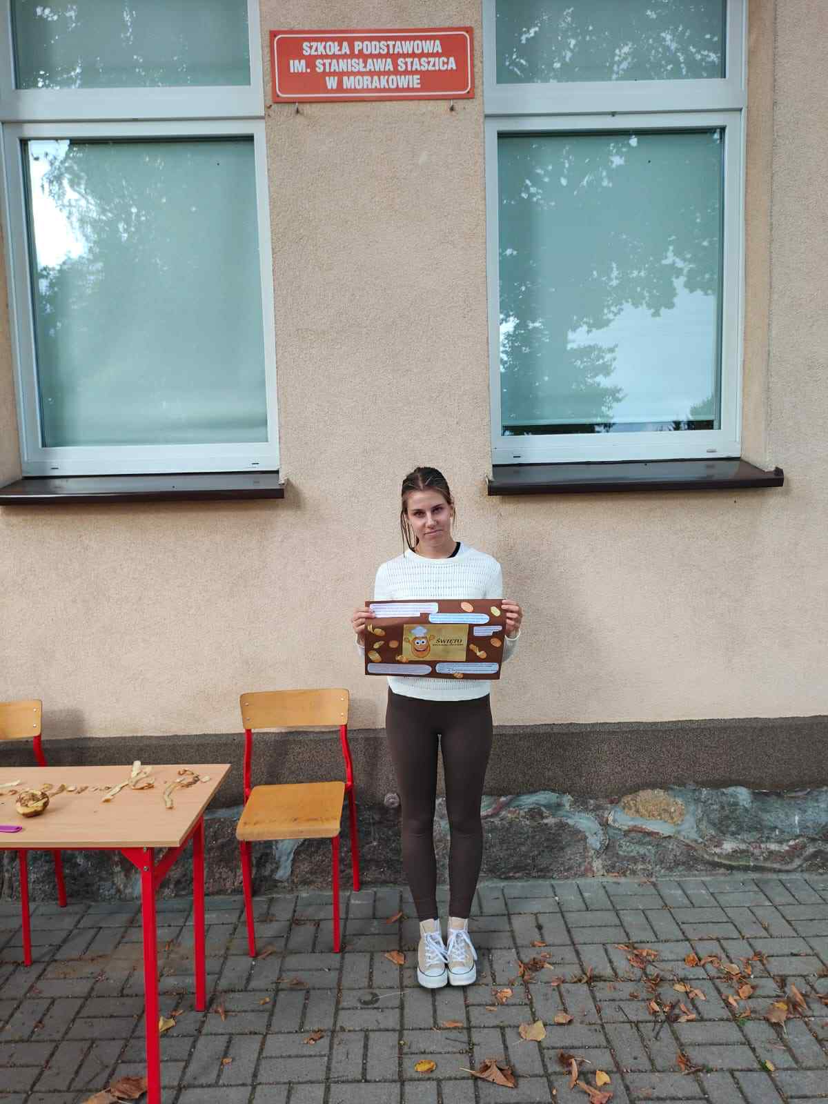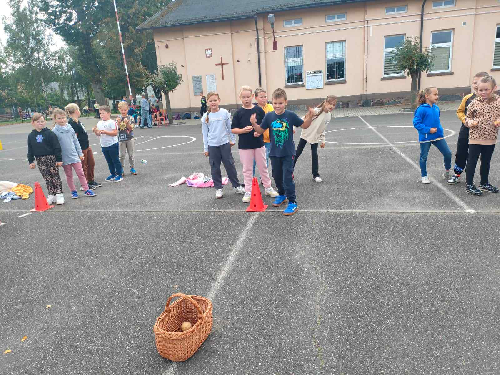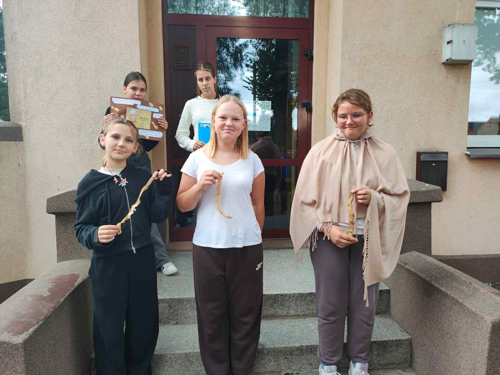 Dnia 19 września 2025 roku w naszej szkole obchodziliśmy „Dzień Pieczonego Ziemniaka”. Głównym celem naszego spotkania było propagowanie aktywnego spędzania wolnego czasu na świeżym powietrzu, podtrzymywanie tradycji Święta Pieczonego Ziemniaka i oczywiście dobra zabawa. W programie uroczystości znalazły się rozgrywki sportowe, konkurs na najdłuższą obierkę, ziemniaczane pieczątki, ubiór na ziemniaka oraz garść wiadomości na temat dzisiejszego święta. Uczniowie z wielkim zaangażowaniem brali udział w przygotowanych na ten dzień grach i zabawach. W konkursie na najdłuższą obierkę zwyciężczynią została Rozalia Gierczak, drugie miejsce zajęła Oliwia Kujawa natomiast trzecie miejsce przypadło Roksanie Lemańskiej. Po zakończonych rozgrywkach sportowych wszyscy zostali poczęstowani plackami ziemniaczanymi przygotowanymi prze panią Katarzynę Furtak, panią Emilię Musiał oraz uczniów. W imieniu pani Dyrektor oraz Samorządu Uczniowskiego wraz z opiekunem panem Maciejem Mężydło chcielibyśmy serdecznie podziękować wszystkim którzy wzięli udział w przygotowaniach i zabawach które odbyły się dzisiejszym dniu.