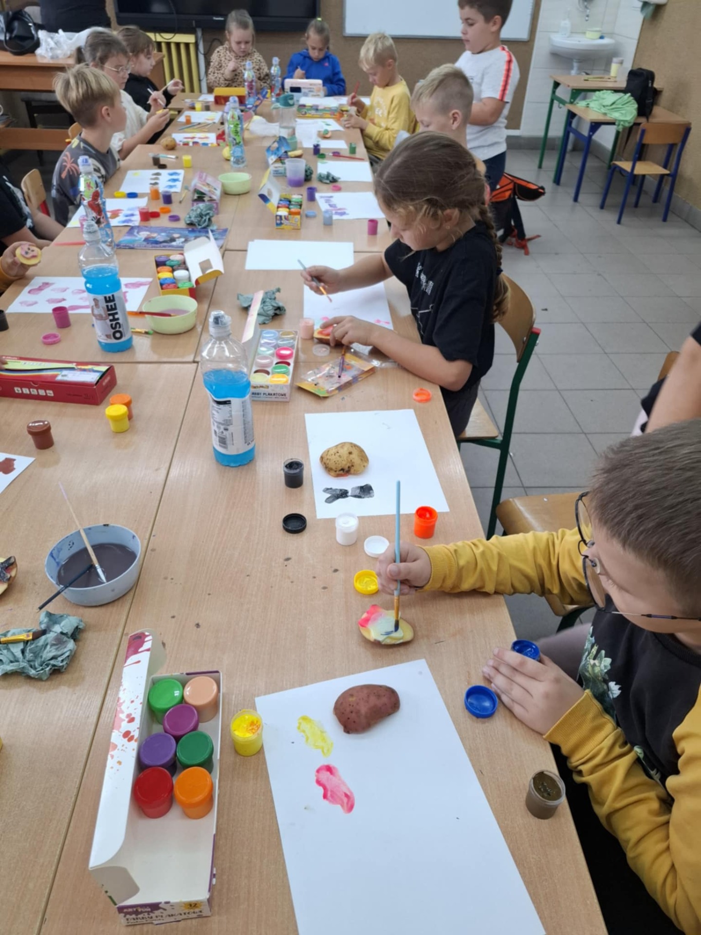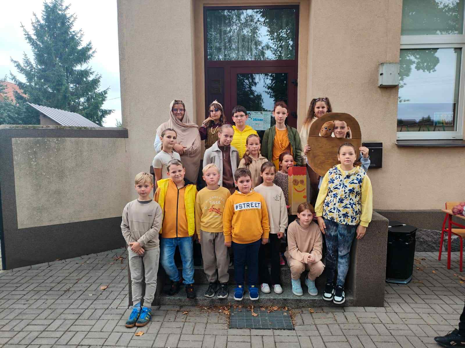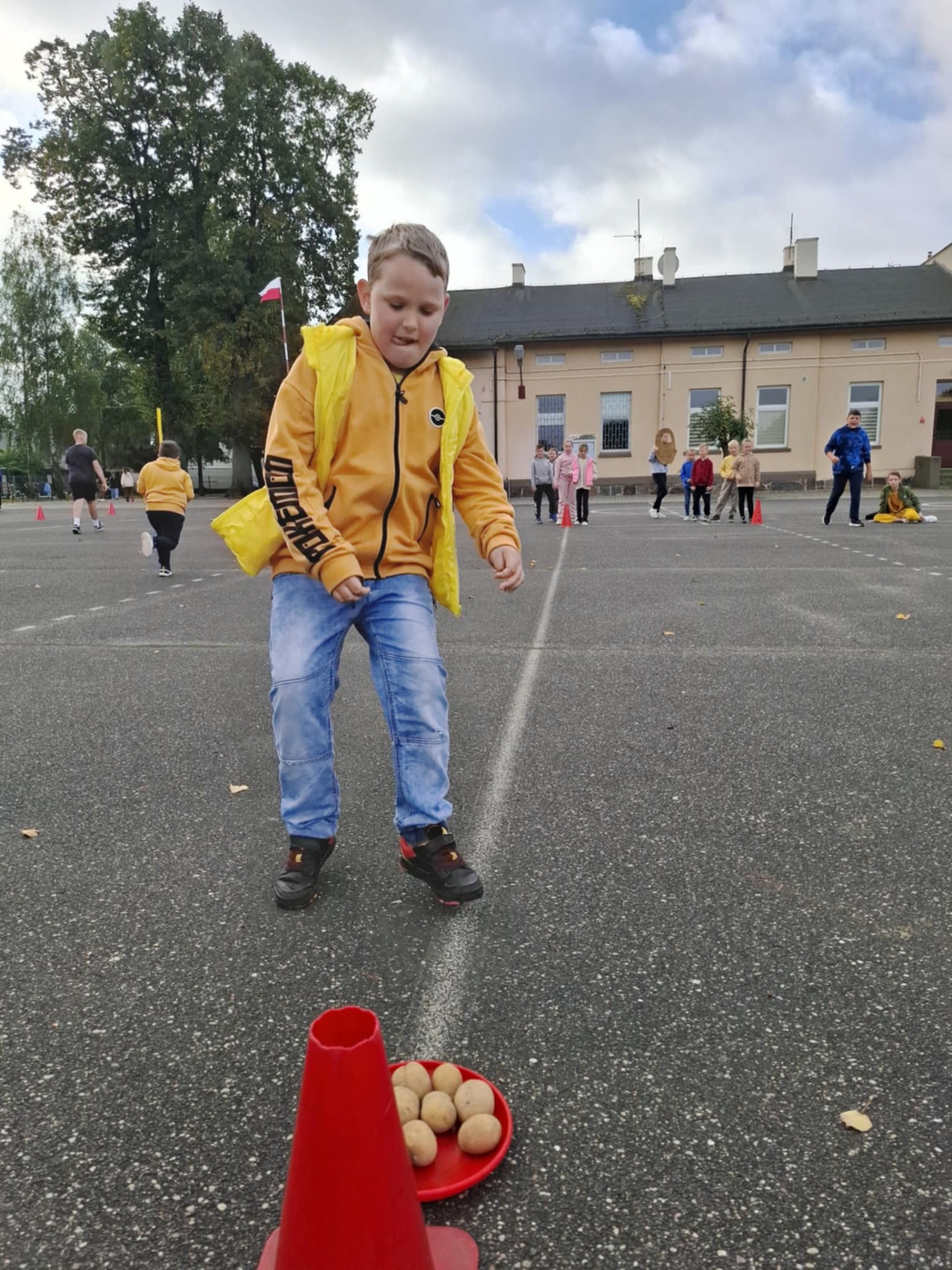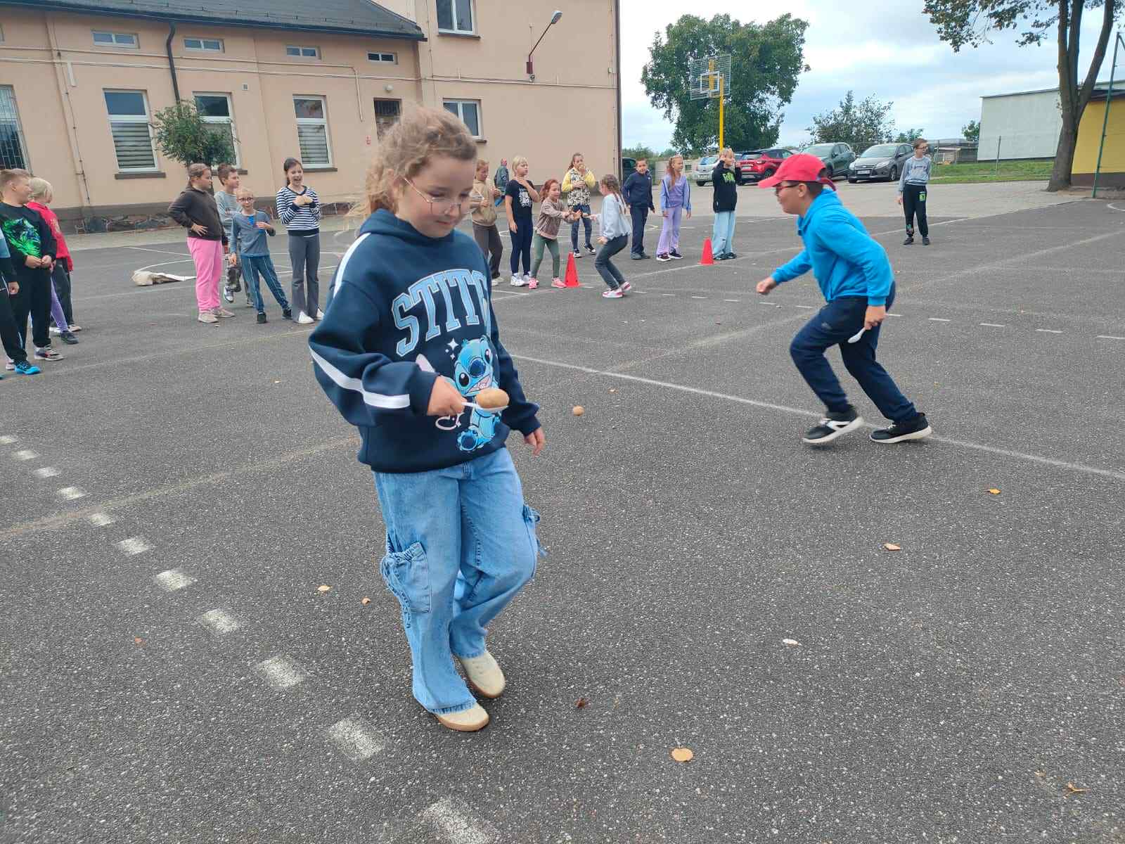 Dnia 19 września 2025 roku w naszej szkole obchodziliśmy „Dzień Pieczonego Ziemniaka”. Głównym celem naszego spotkania było propagowanie aktywnego spędzania wolnego czasu na świeżym powietrzu, podtrzymywanie tradycji Święta Pieczonego Ziemniaka i oczywiście dobra zabawa. W programie uroczystości znalazły się rozgrywki sportowe, konkurs na najdłuższą obierkę, ziemniaczane pieczątki, ubiór na ziemniaka oraz garść wiadomości na temat dzisiejszego święta. Uczniowie z wielkim zaangażowaniem brali udział w przygotowanych na ten dzień grach i zabawach. W konkursie na najdłuższą obierkę zwyciężczynią została Rozalia Gierczak, drugie miejsce zajęła Oliwia Kujawa natomiast trzecie miejsce przypadło Roksanie Lemańskiej. Po zakończonych rozgrywkach sportowych wszyscy zostali poczęstowani plackami ziemniaczanymi przygotowanymi prze panią Katarzynę Furtak, panią Emilię Musiał oraz uczniów. W imieniu pani Dyrektor oraz Samorządu Uczniowskiego wraz z opiekunem panem Maciejem Mężydło chcielibyśmy serdecznie podziękować wszystkim którzy wzięli udział w przygotowaniach i zabawach które odbyły się dzisiejszym dniu.