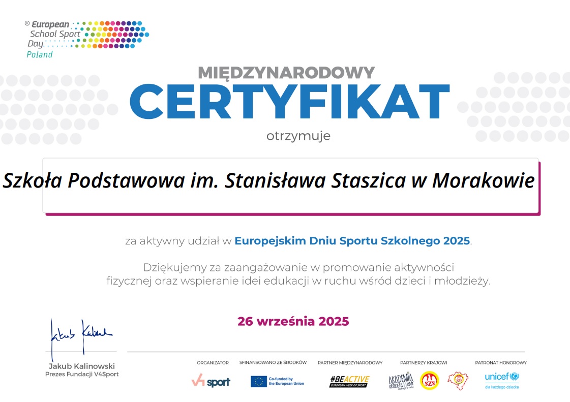 Europejski Dzień Sportu Szkolnego 2025 - Certyfikat