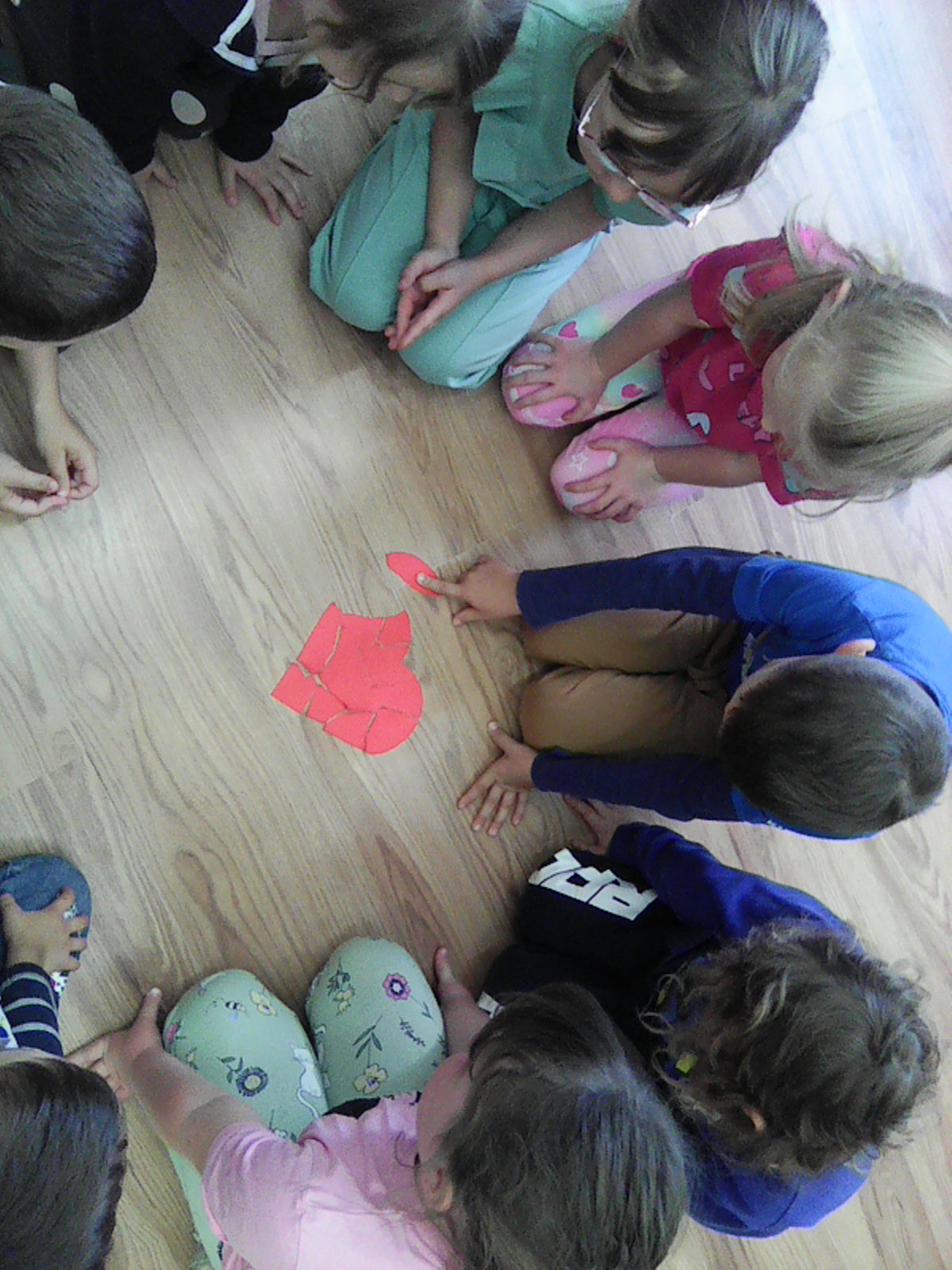 W minionym tygodniu zerówkę odwiedził psycholog szkolny, który przeprowadził zajęcia poświęcone budowaniu dobrych relacji w grupie. Dzieci poznały „potworki emocji”, dzięki którym uczyły się rozpoznawać i nazywać swoje uczucia oraz lepiej rozumieć emocje innych. Kolejnym elementem były zabawy ruchowe i integracyjne, które sprzyjały współpracy, uważności na kolegów i koleżanki oraz wzajemnemu wspieraniu się. Zajęcia dostarczyły dzieciom wiele radości, a jednocześnie uczyły tolerancji, akceptacji i szacunku. Było to cenne doświadczenie, które pomogło lepiej zintegrować grupę i umocnić więzi między dziećmi. W tygodniu odbyły się również zajęcia budujące relacje oparte na treści opowiadania pt. ,,Serduszko z listków – opowiadanie o Jeżyku Roro”. Dzieci rozmawiały o emocjach, uczyły się, jak słowa i zachowania mogą ranić lub wspierać, a także wzięły udział w ćwiczeniach plastycznych symbolizujących naprawianie relacji. Zajęcia sprzyjały budowaniu atmosfery życzliwości, akceptacji i wzajemnego szacunku w grupie.