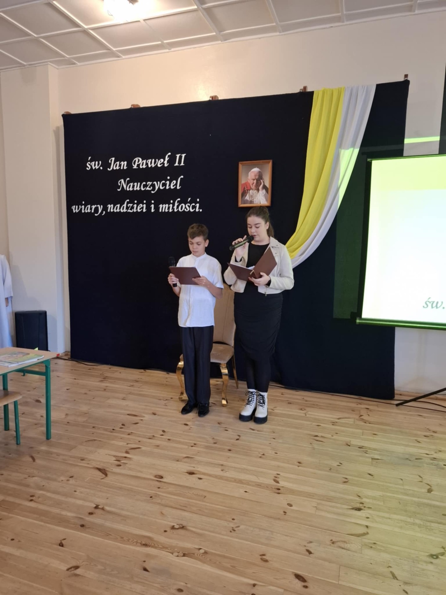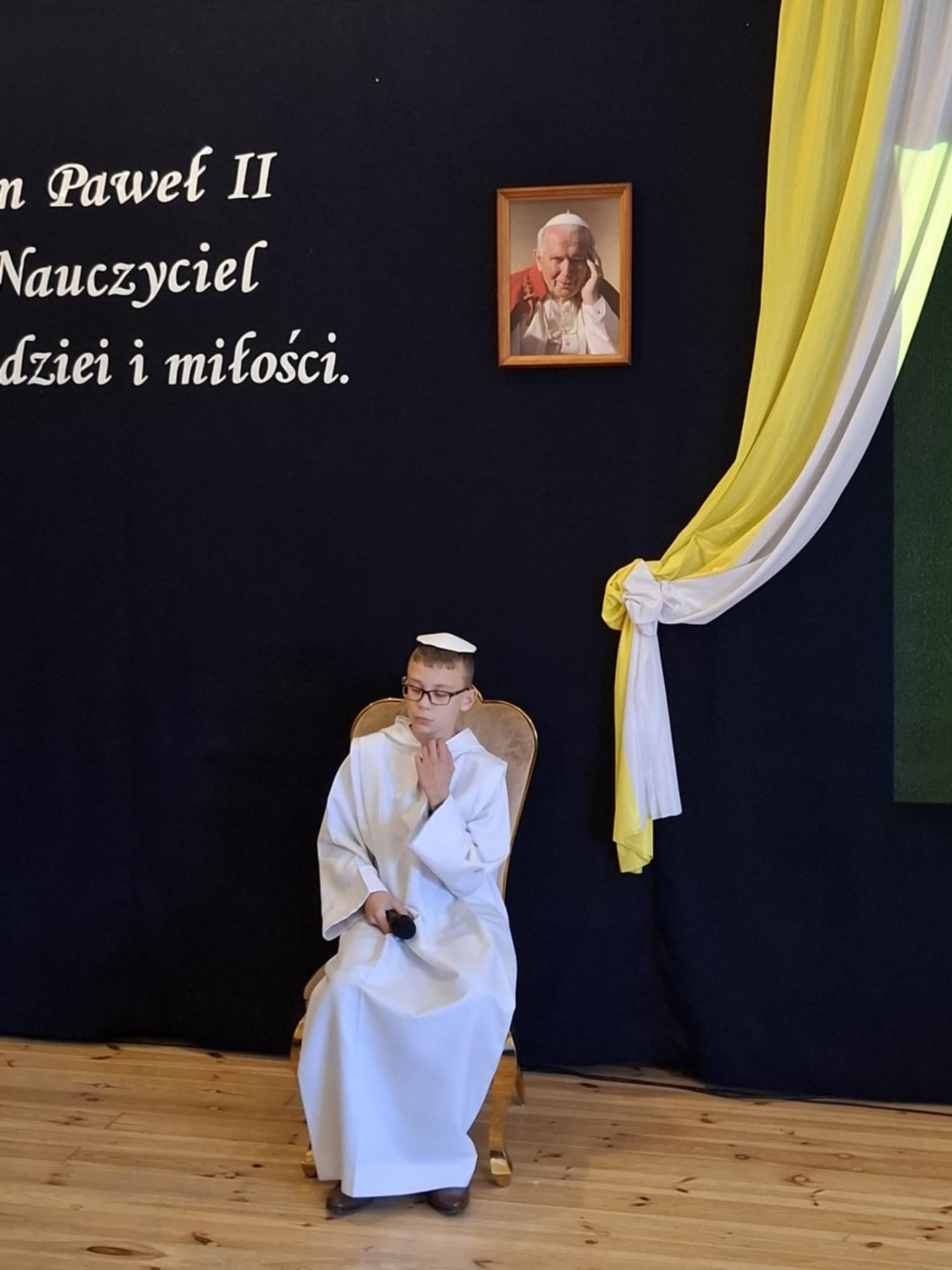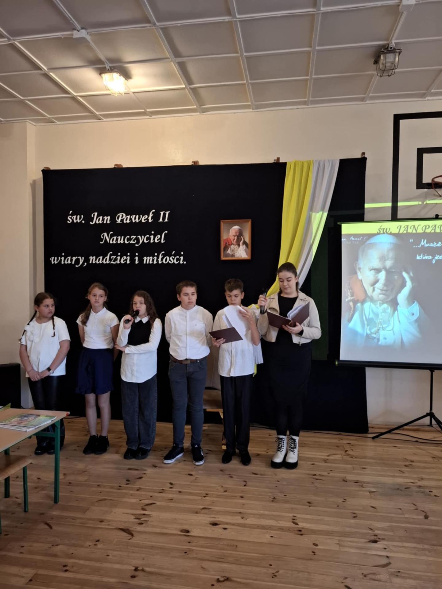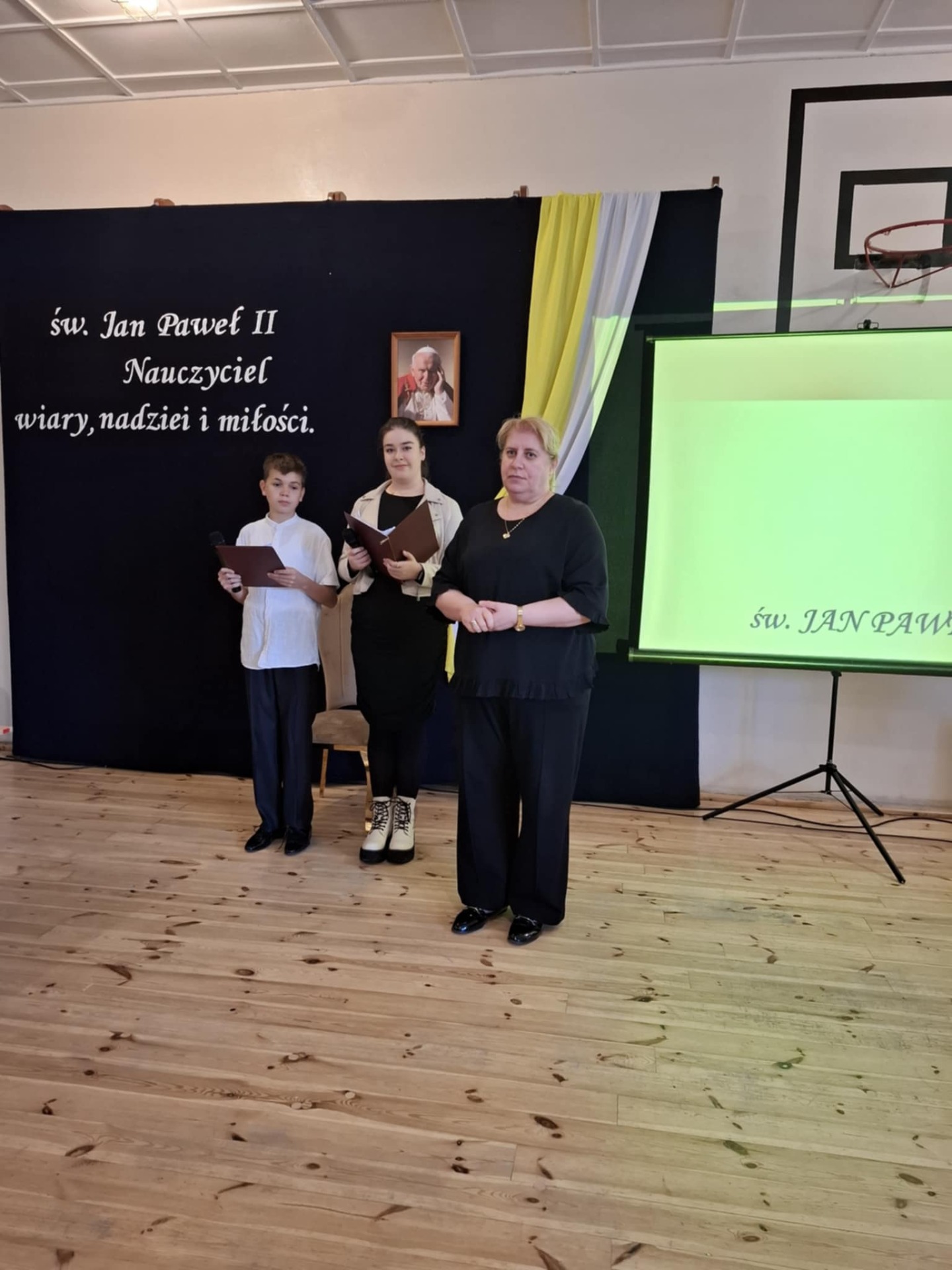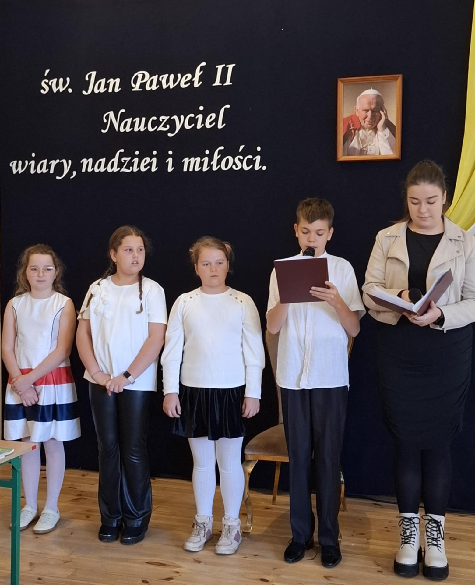 W naszej szkole odbyła się wyjątkowa uroczystość z okazji Dnia Papieskiego oraz Dnia Edukacji Narodowej – był to dzień pełen refleksji, wdzięczności i radości. W szczególny sposób wspominaliśmy św. Jana Pawła II, który w tym roku był dla nas inspiracją pod hasłem: „Jan Paweł II – Papież, który niósł nadzieję.” Pamiętaliśmy o nim nie tylko jako o wielkim autorytecie Kościoła, ale także jako nauczycielu, który dawał nadzieję, uczył miłości, odwagi i zaufania Bogu. Podczas apelu przytoczono jego słowa, które do dziś poruszają serca: