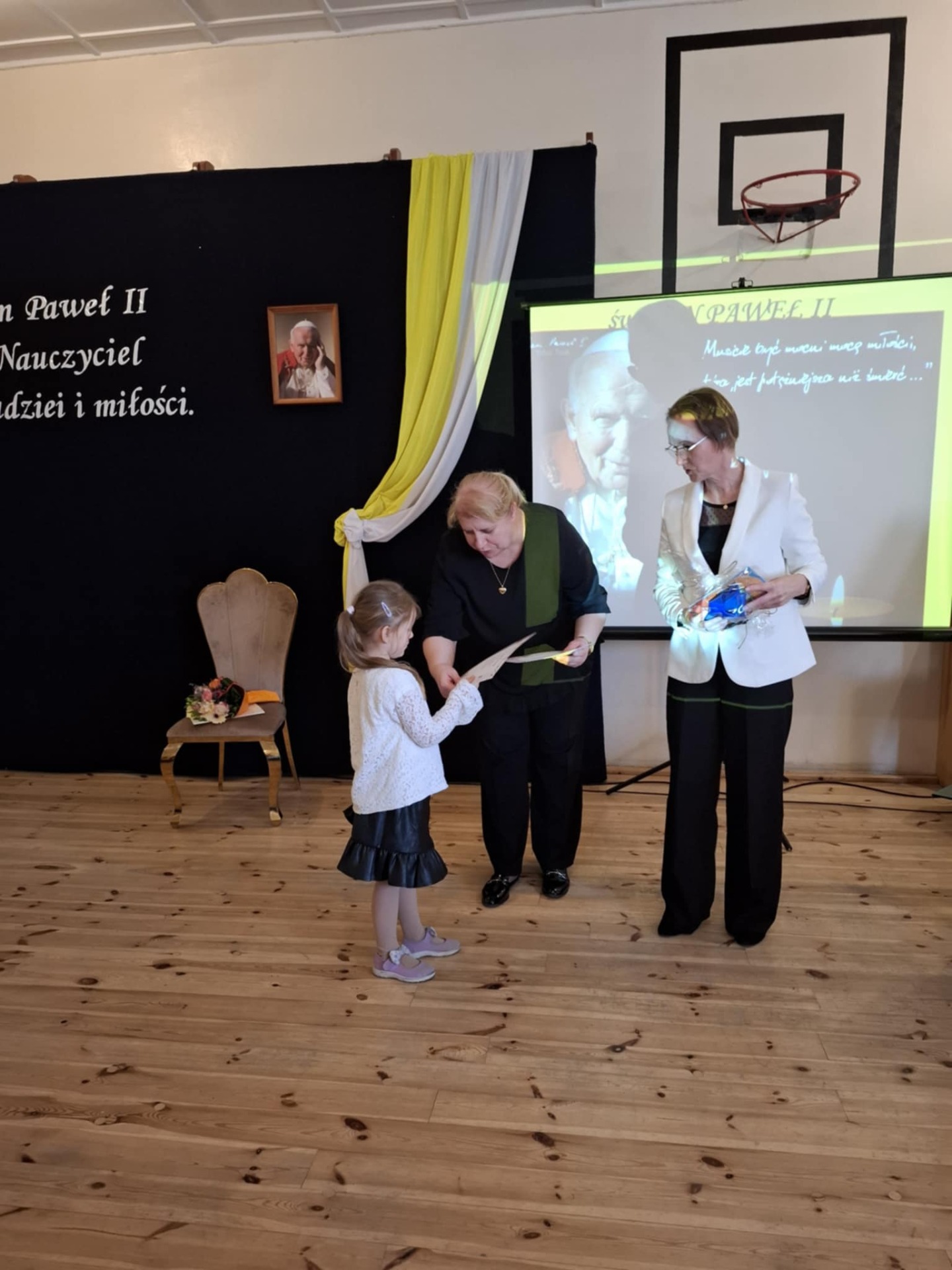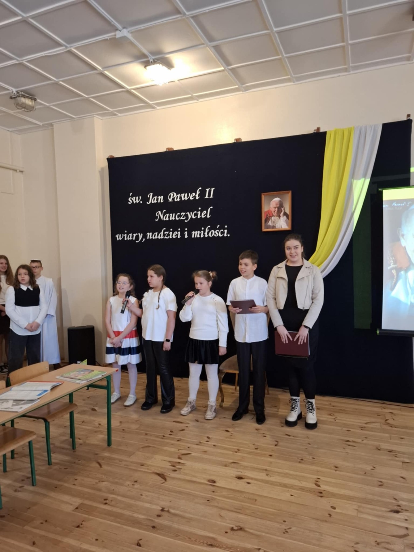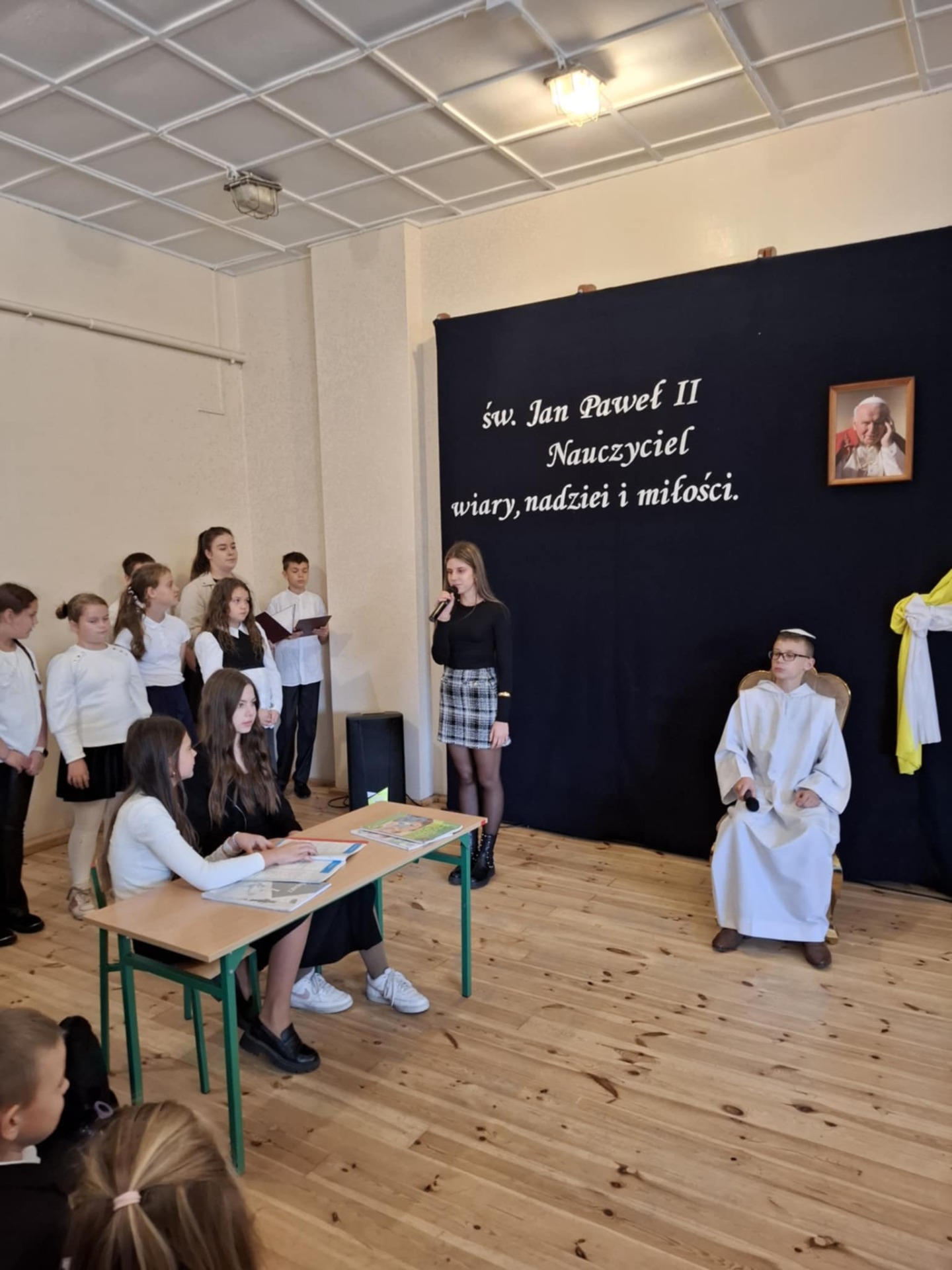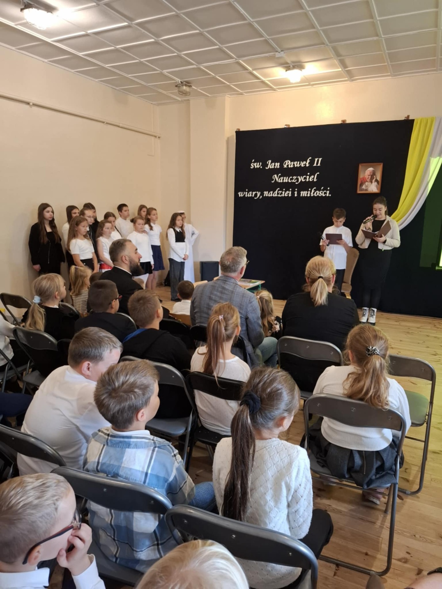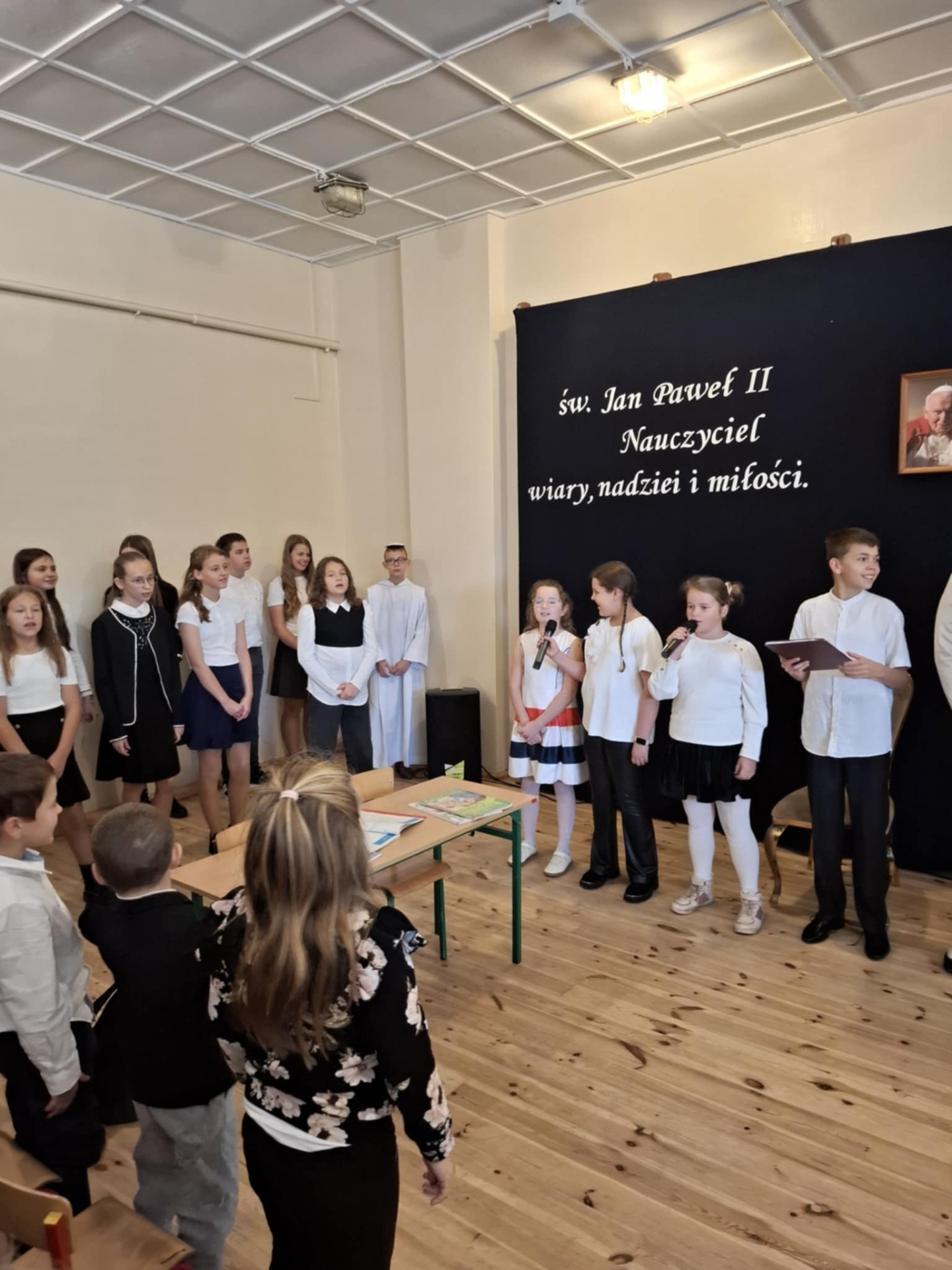 W naszej szkole odbyła się wyjątkowa uroczystość z okazji Dnia Papieskiego oraz Dnia Edukacji Narodowej – był to dzień pełen refleksji, wdzięczności i radości. W szczególny sposób wspominaliśmy św. Jana Pawła II, który w tym roku był dla nas inspiracją pod hasłem: „Jan Paweł II – Papież, który niósł nadzieję.” Pamiętaliśmy o nim nie tylko jako o wielkim autorytecie Kościoła, ale także jako nauczycielu, który dawał nadzieję, uczył miłości, odwagi i zaufania Bogu. Podczas apelu przytoczono jego słowa, które do dziś poruszają serca: