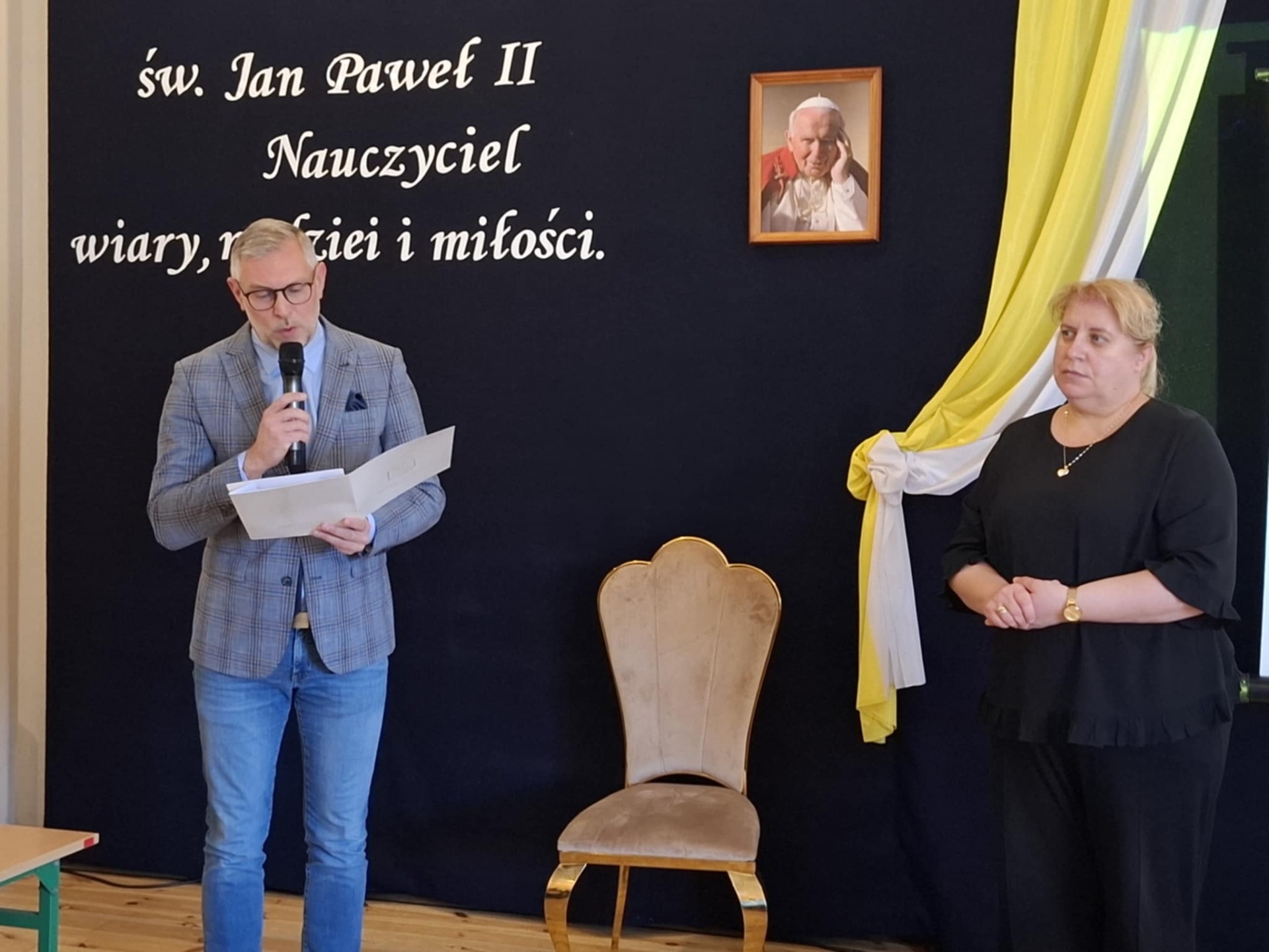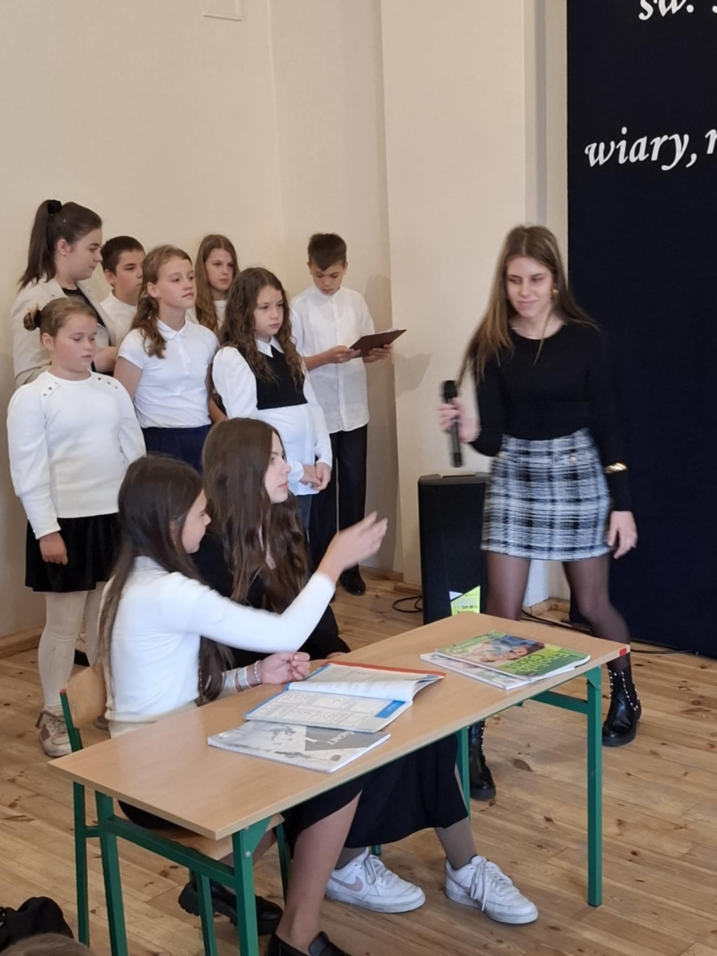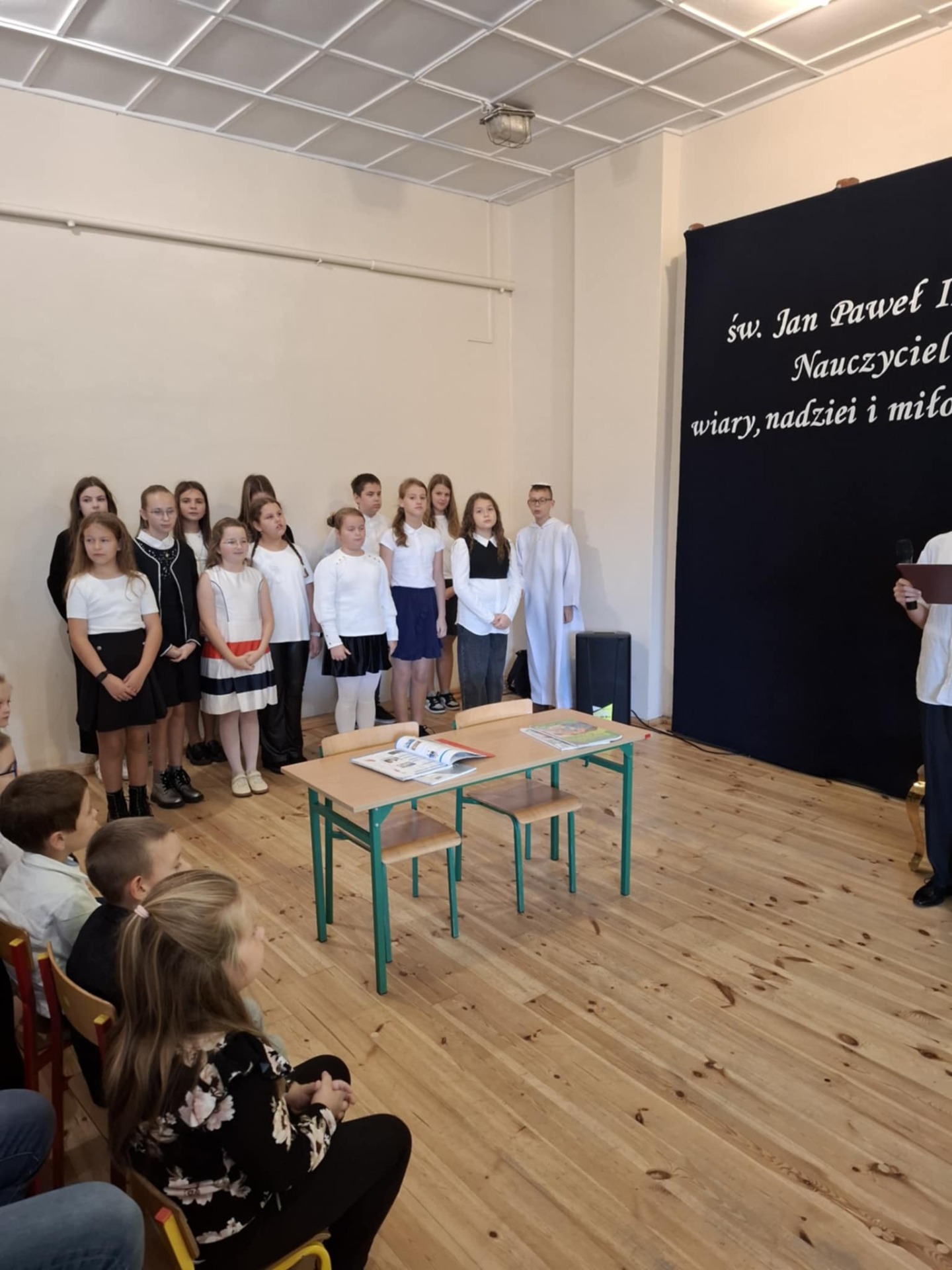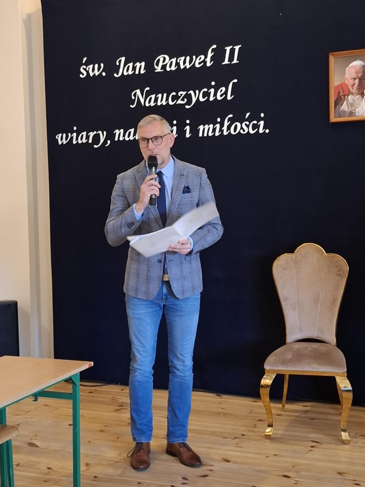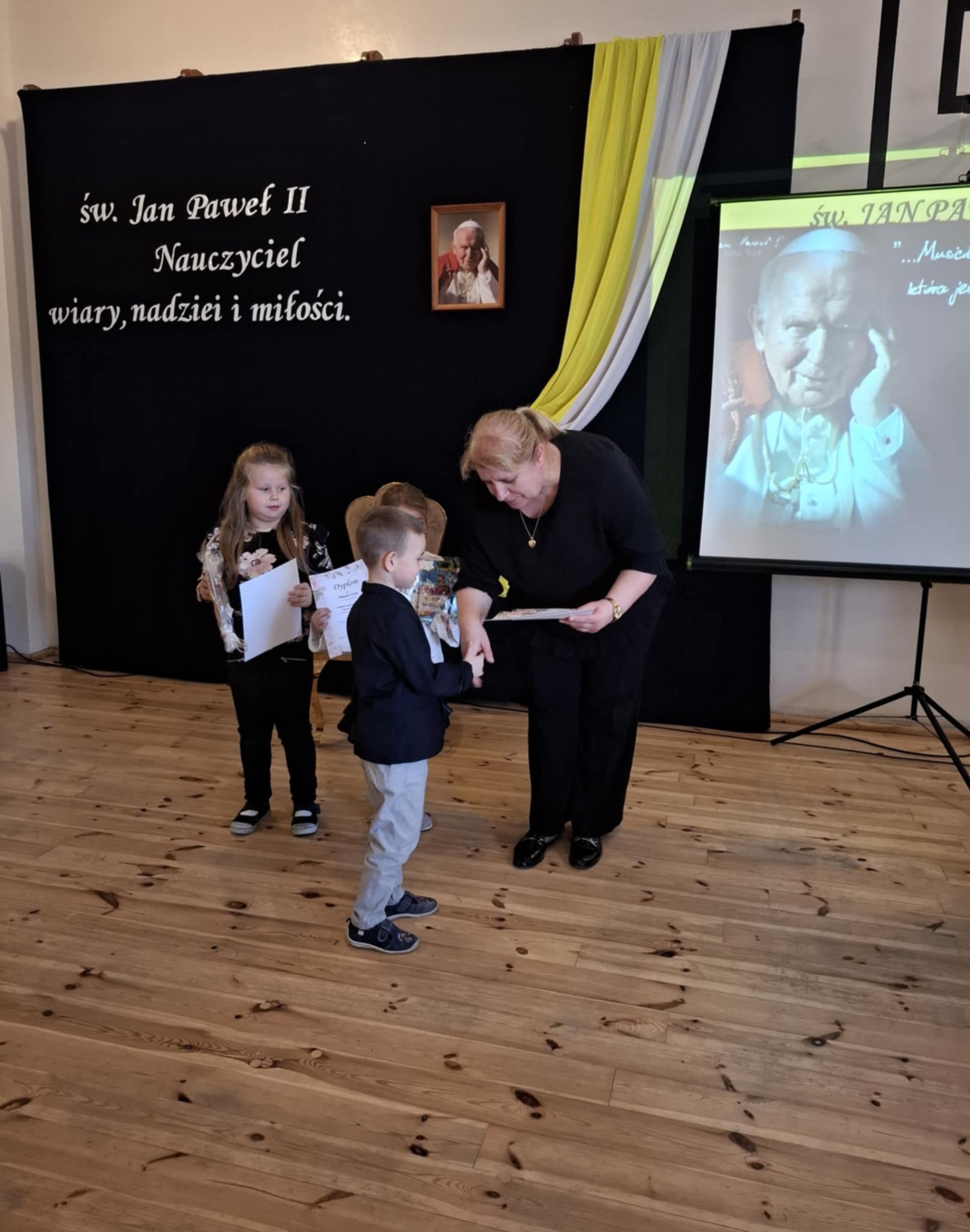 W naszej szkole odbyła się wyjątkowa uroczystość z okazji Dnia Papieskiego oraz Dnia Edukacji Narodowej – był to dzień pełen refleksji, wdzięczności i radości. W szczególny sposób wspominaliśmy św. Jana Pawła II, który w tym roku był dla nas inspiracją pod hasłem: „Jan Paweł II – Papież, który niósł nadzieję.” Pamiętaliśmy o nim nie tylko jako o wielkim autorytecie Kościoła, ale także jako nauczycielu, który dawał nadzieję, uczył miłości, odwagi i zaufania Bogu. Podczas apelu przytoczono jego słowa, które do dziś poruszają serca: