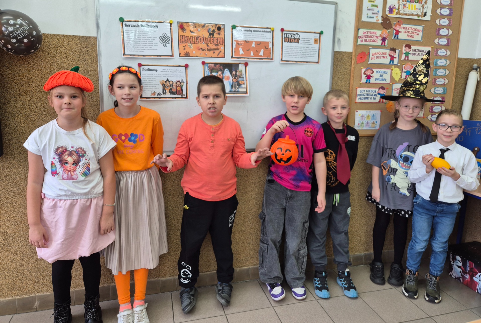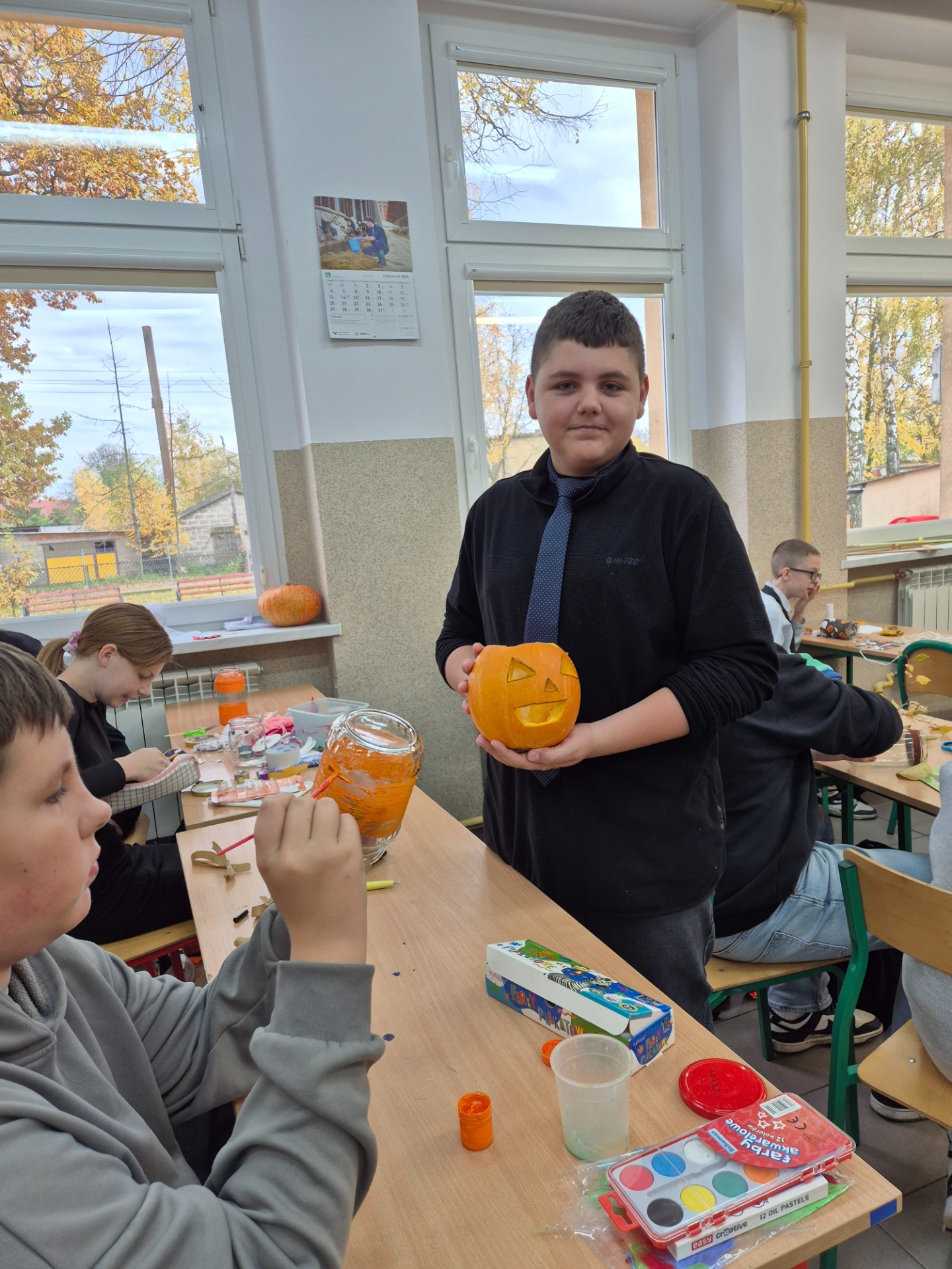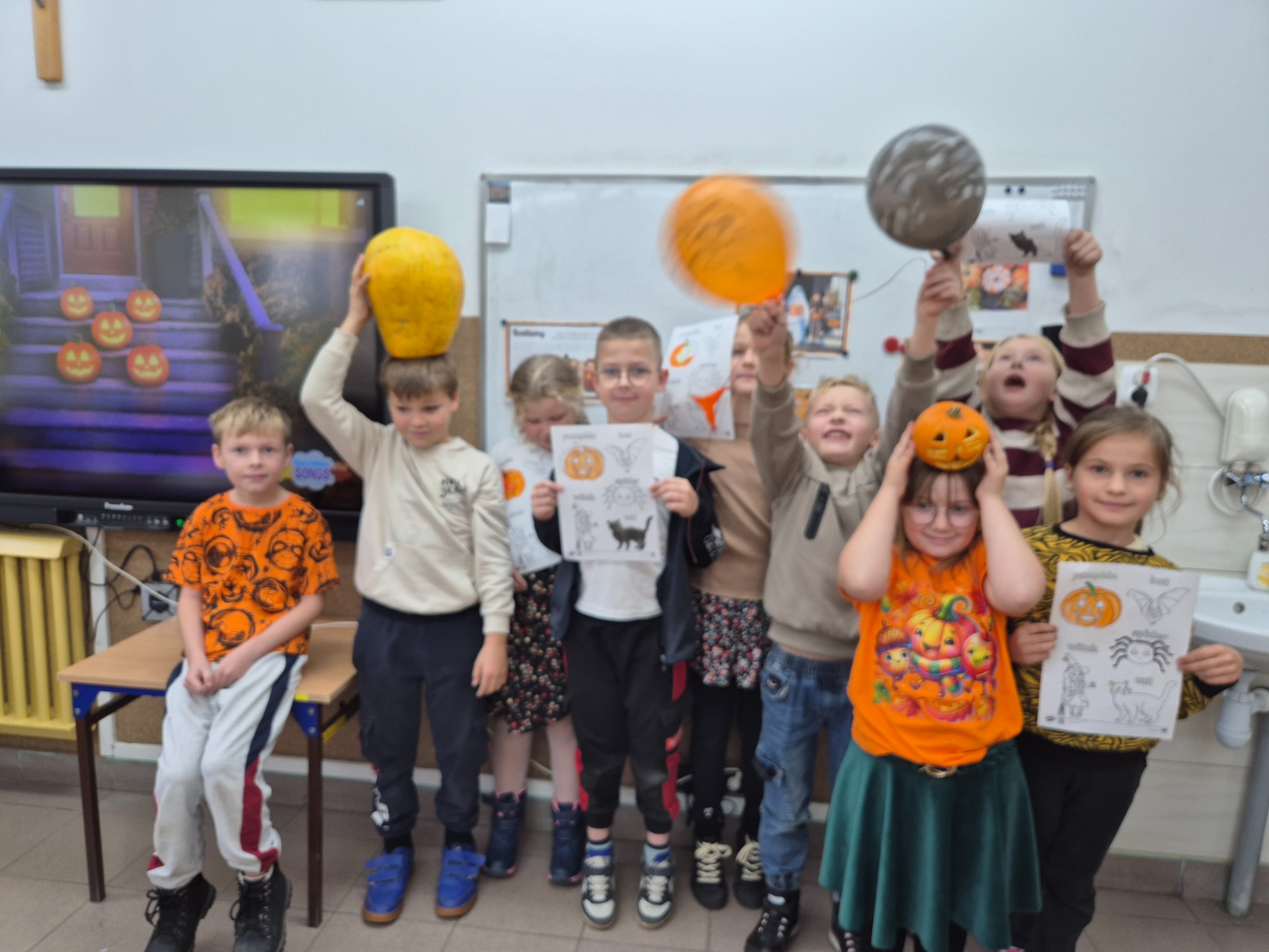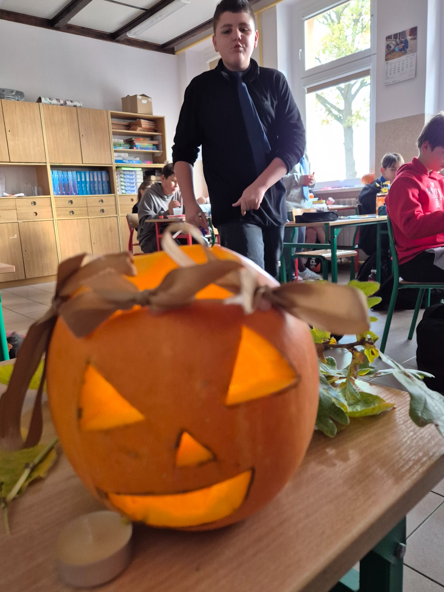 Dzisiaj, tj. 31 października, podsumowujemy nasze tygodniowe zmagania zarówno plastyczne, językowe jak i kulturowe związane z krajami anglojęzycznymi. Uczniowie naszej szkoły przygotowali na lekcjach języka angielskiego oraz plastyki wspaniałe dyniowo – jesienne lampiony, poznawali historię święta Halloween oraz etymologię tego słowa, które wywodzi się od angielskiego wyrażenia „All Hallows’Eve” co oznacza „wigilię Wszystkich Świętych”. Po zapoznaniu się z historią, symbolami i legendami dotyczącymi obchodów tego święta, przystąpili do zmagań językowych, poszerzając swoje słownictwo. Młodsi uczniowie słuchali angielskich piosenek o tematyce dyniowej. Nie zabrakło oryginalnych strojów, cukierków i uśmiechów.