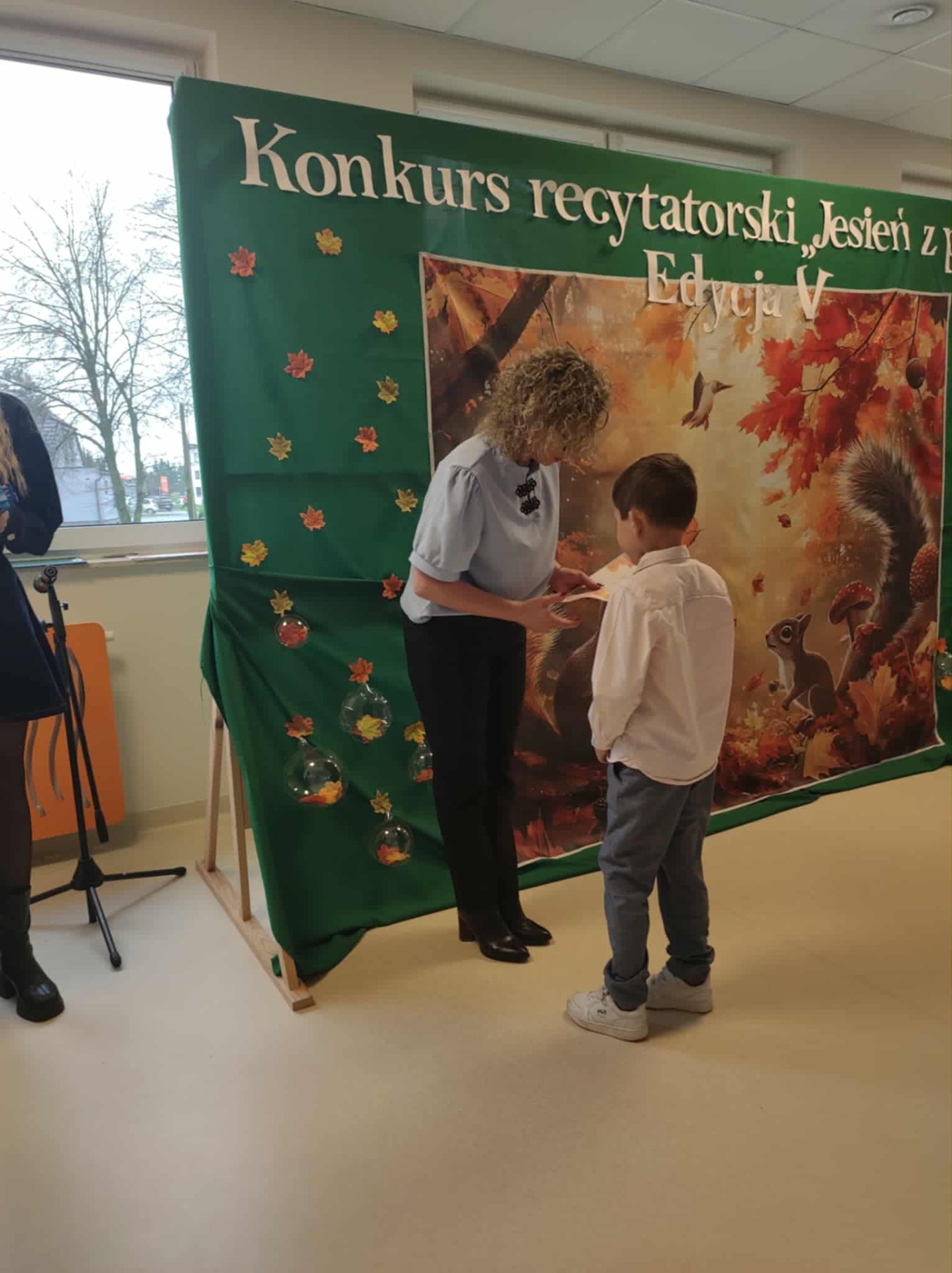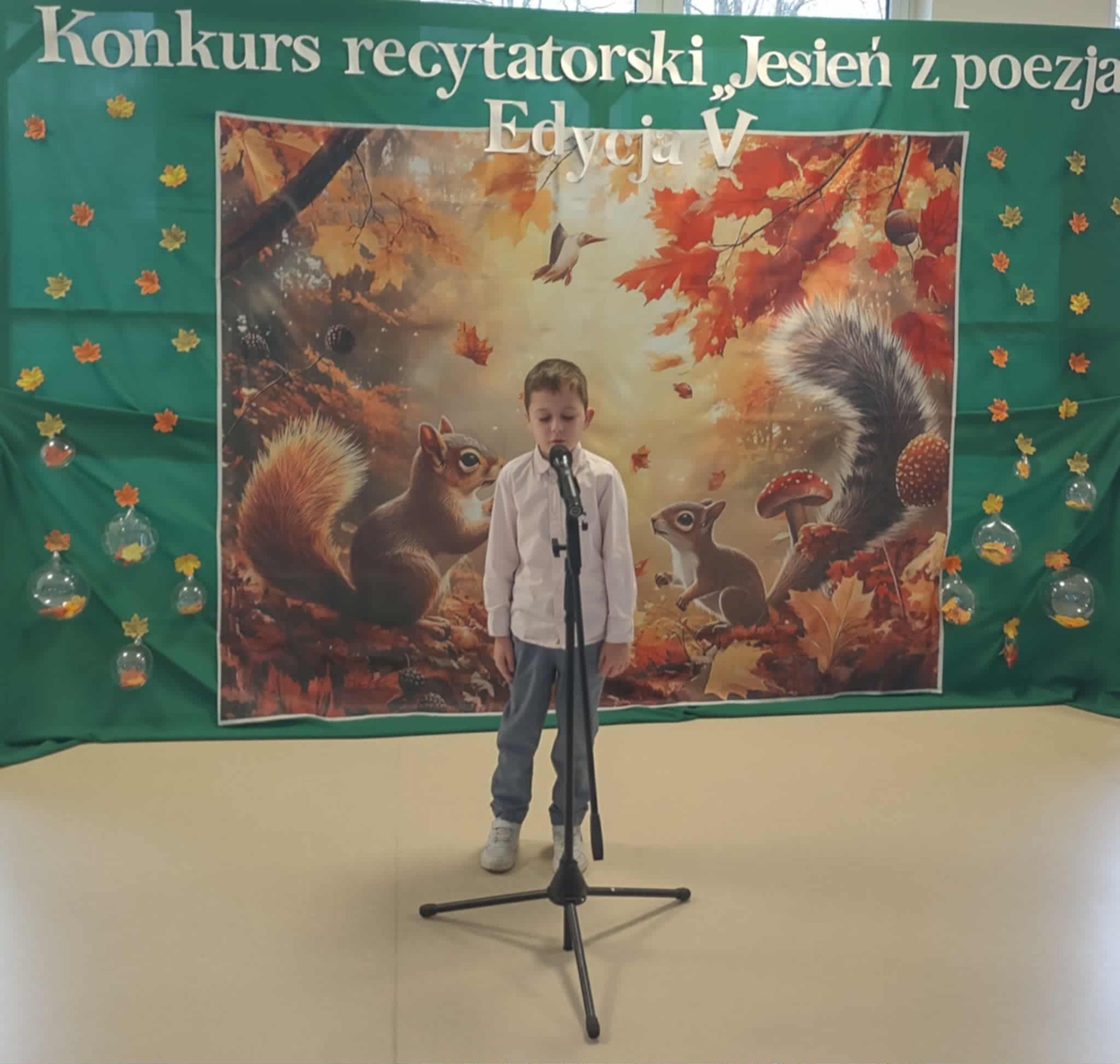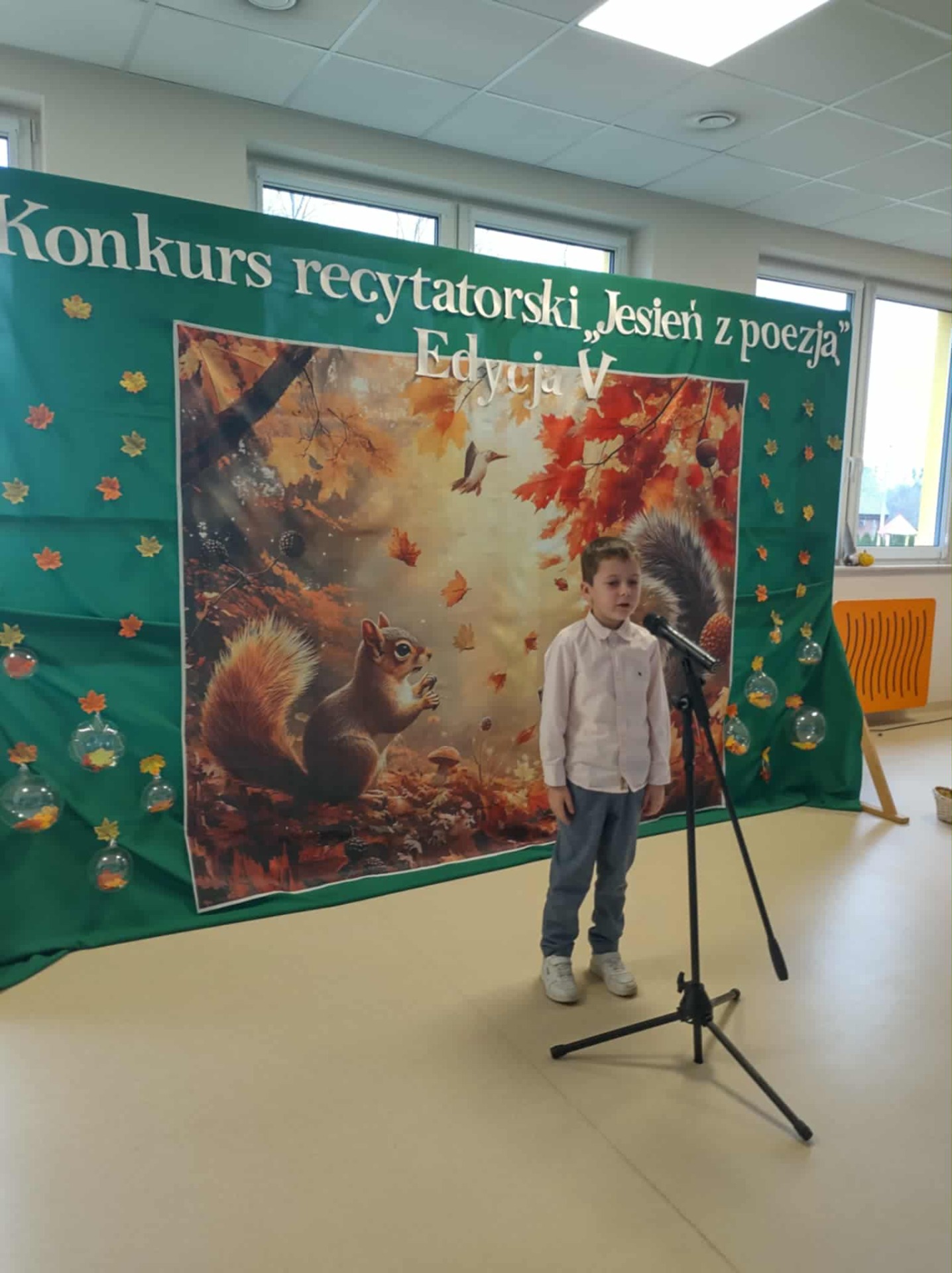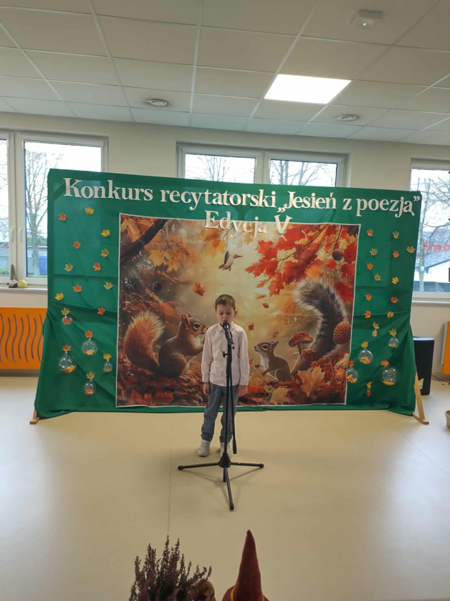 Dnia 14 listopada 2025 r. w Przedszkolu Publicznym w Gołańczy odbył się V Konkurs Recytatorski „Jesień z poezją” przeznaczony dla dzieci w wieku 4-6 lat. Maluchy prezentowały dowolny utwór poetycki o tematyce jesiennej. Naszą szkołę reprezentował Milan Skrentny recytując wiersz Magdaleny Niekry „Jesienny pogodowy miszmasz”. Za swoją prezentację otrzymał dyplom – podziękowanie.