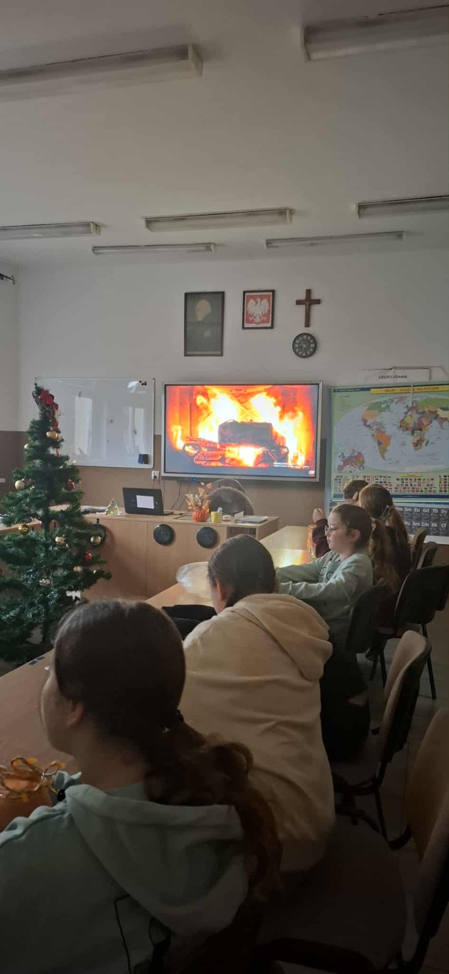 Podczas dzisiejszych zajęć z psychologiem uczniowie klasy IV i V wspólnie ubierali choinkę. Dzieci dzieliły się wspomnieniami i opowiadały, jakie emocje towarzyszą im w okresie świątecznym. Wspólne dekorowanie choinki stało się okazją do współpracy, wzajemnego wsparcia i budowaniu poczucia wspólnoty.