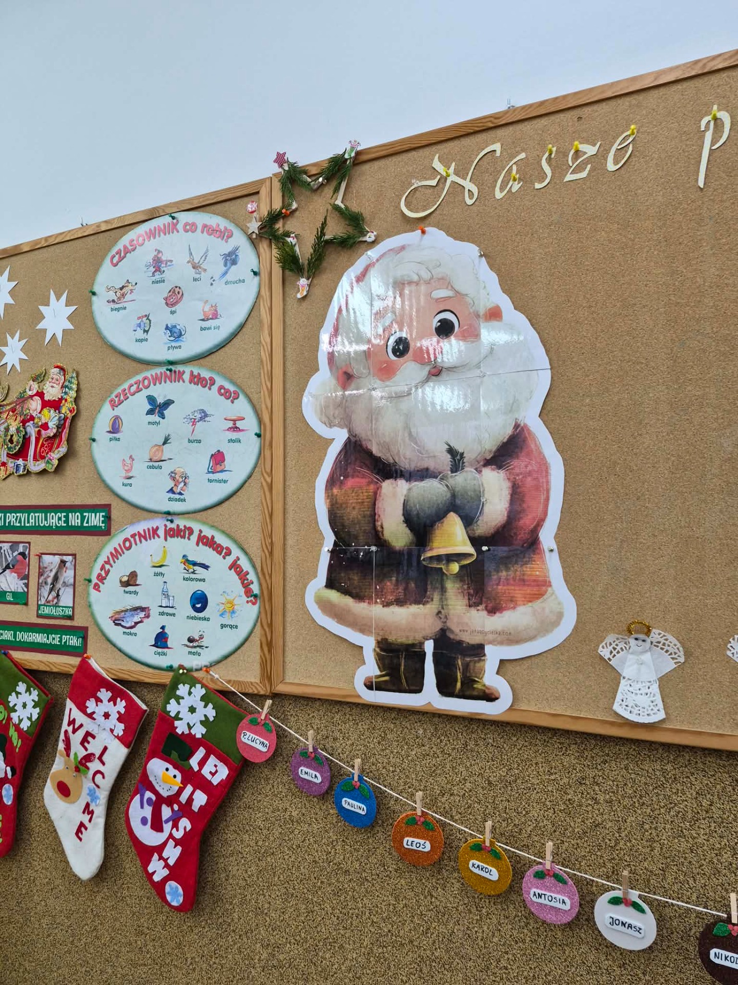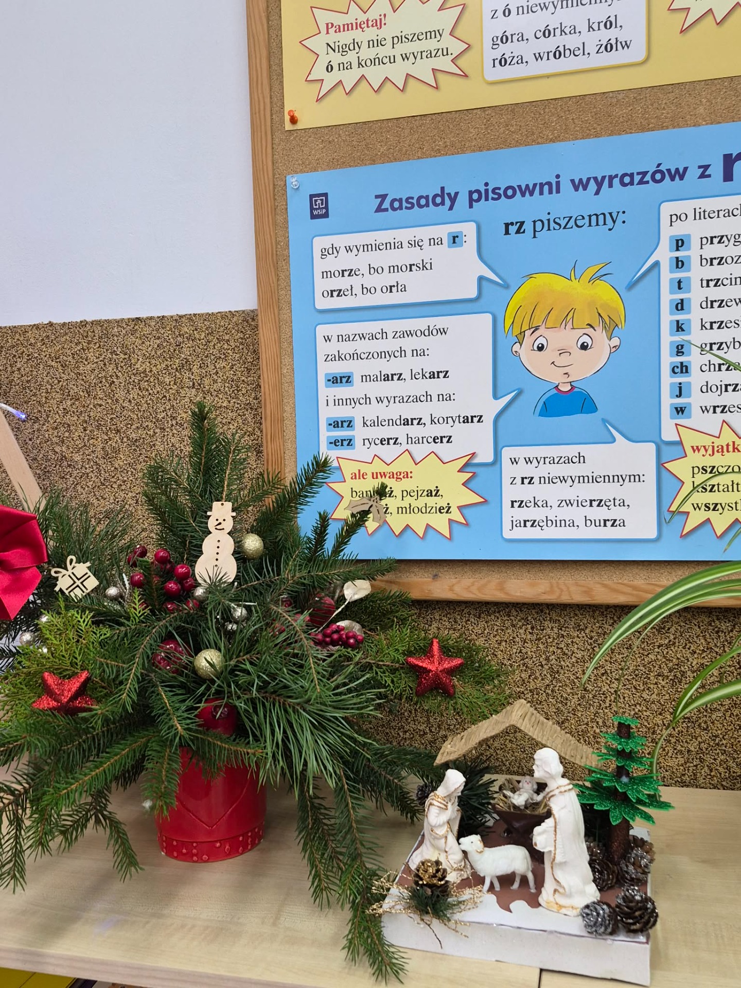 5 grudnia 2025 roku – ten dzień zapamiętamy na długo. Rozpoczęliśmy dzień z całą szkolną społecznością. Obejrzeliśmy prezentację przygotowaną przez Samorząd Szkolny, spotkaliśmy się z Mikołajem i jego elfami, a potem wróciliśmy do klasy, ponieważ na ten dzień zaprosiliśmy swoich bliskich. Wraz z naszą panią powitaliśmy zaproszonych gości, a potem wszyscy zabrali się do pracy. Wycinano, klejono, szyto, wiązano, a przy tym było dużo radości i śmiechu. Efektem spędzonych razem chwil, są nasze prace, które zdobią klasę i wprowadzają świąteczny nastrój. Na koniec była kawusia, słodkości przygotowane przez mamy i oczywiście upominki od Mikołaja. Bardzo dziękujemy Wam Kochani, że byliście z nami i za wspólne dzieło. Uczniowie klasy III z wychowawczynią panią Lucyną.