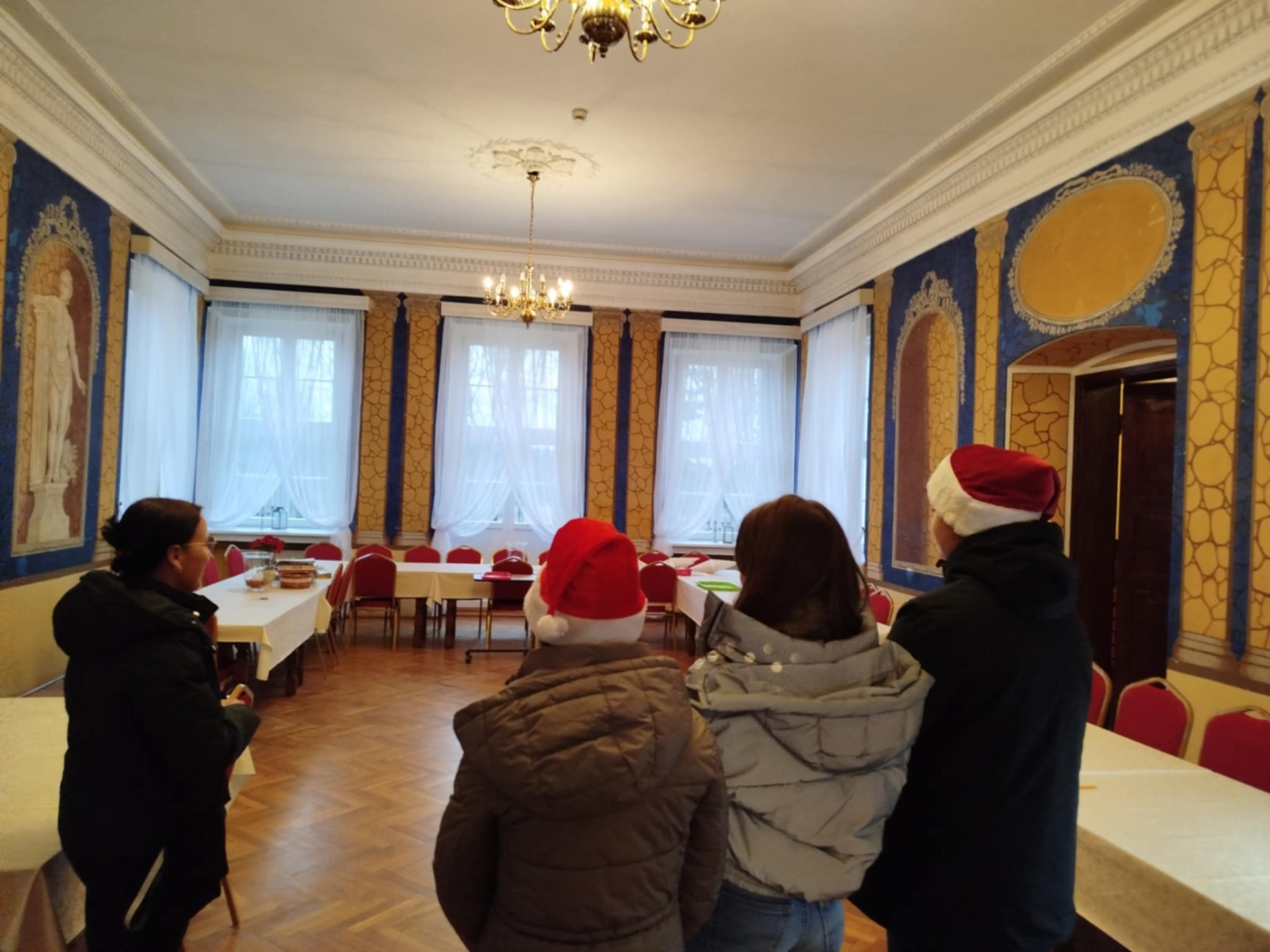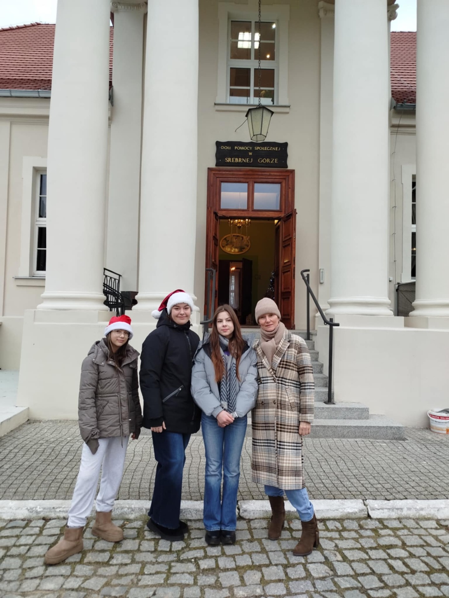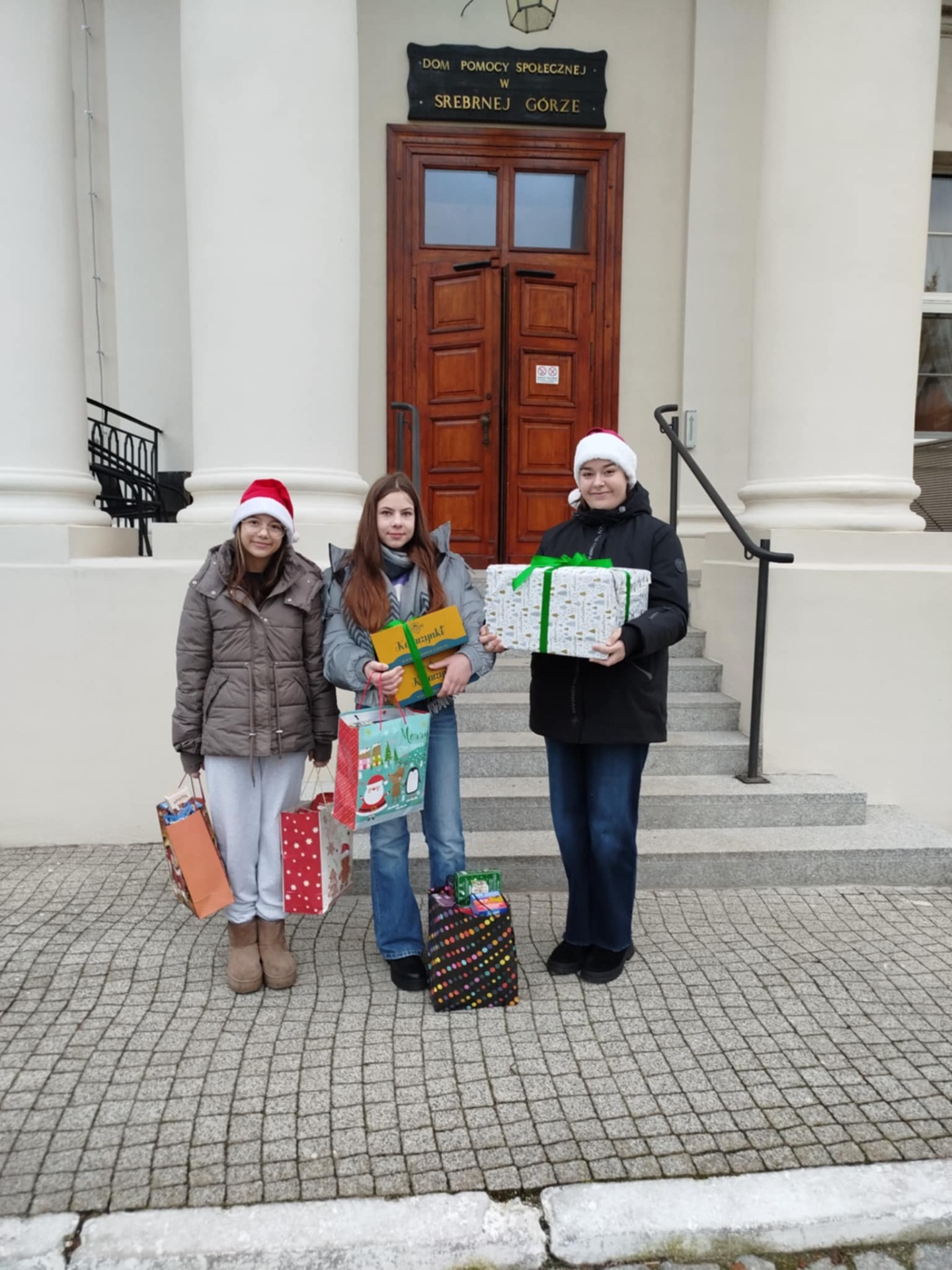 12 grudnia 2025 roku zawieźliśmy do Domu Pomocy Społecznej w Srebrnej Górze dary zebrane w naszej szkole w ramach akcji prowadzonej przez Szkolny Wolontariat „Iskierka Dobroci” pod opieką pani Anny Kuchty. Dzięki ofiarności społeczności szkolnej udało się zgromadzić herbaty, kawy oraz słodycze, które przekazaliśmy pensjonariuszom z okazji nadchodzących Świąt Bożego Narodzenia. W wyjeździe uczestniczyły uczennice klasy VII: Marta Pawłowska, Michalina Godek oraz Antonina Lemańska. Udział w takim działaniu to dla młodzieży ważna lekcja empatii, wrażliwości społecznej oraz dostrzegania potrzeb osób starszych. Dziękujemy wszystkim, którzy wsparli naszą świąteczną zbiórkę. Szczególne podziękowania kierujemy do pani Lemańskiej za zorganizowanie wyjazdu i opiekę nad uczennicami. Na miejscu zostaliśmy serdecznie przyjęci przez pracowników placówki. Oprowadzono nas po ośrodku i opowiedziano, jak funkcjonuje oraz jak wygląda codzienne życie jego mieszkańców. Pani Dyrektor DPS, w imieniu podopiecznych, podziękowała za przekazane dary oraz złożyła wszystkim świąteczne życzenia, wyrażając wdzięczność za coroczną pamięć i okazywane serce.