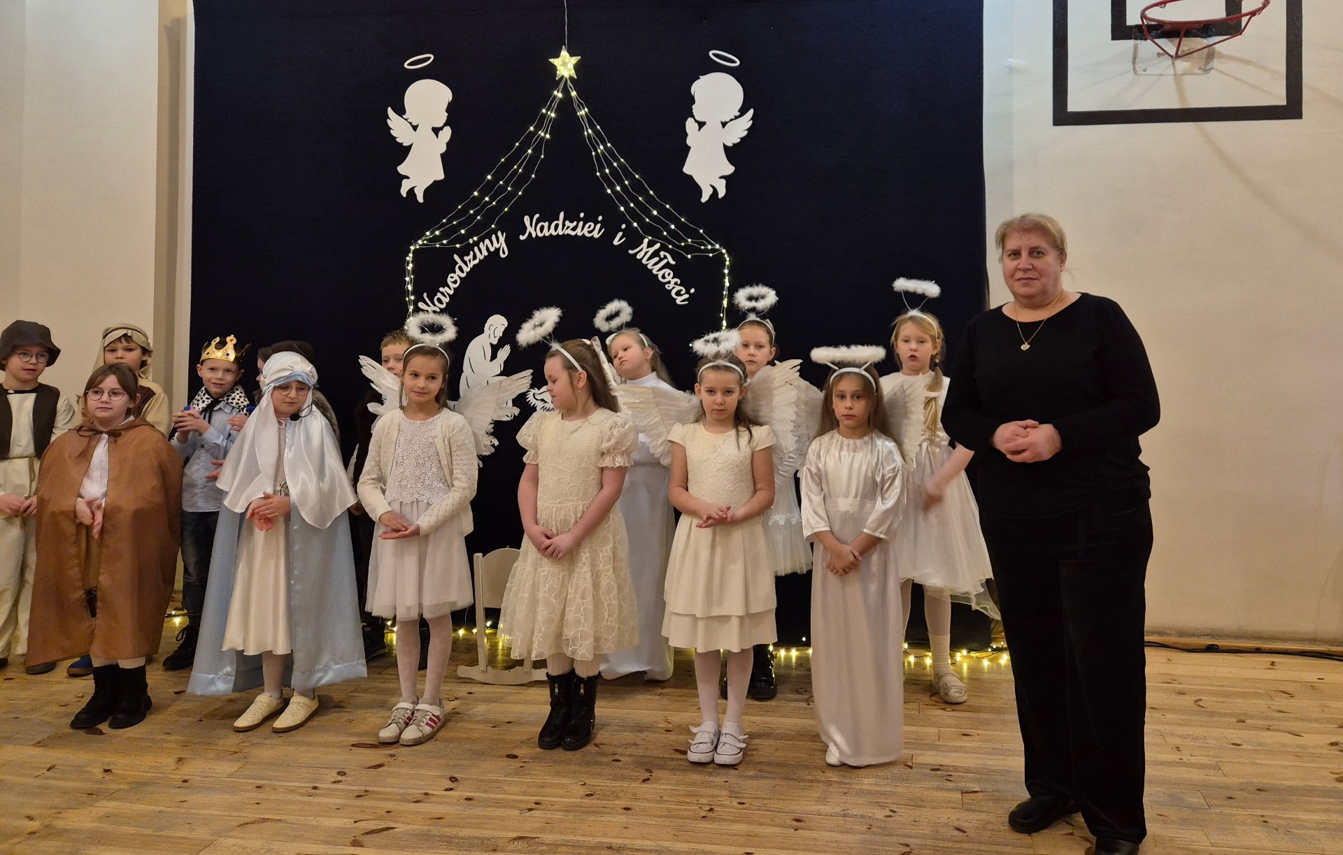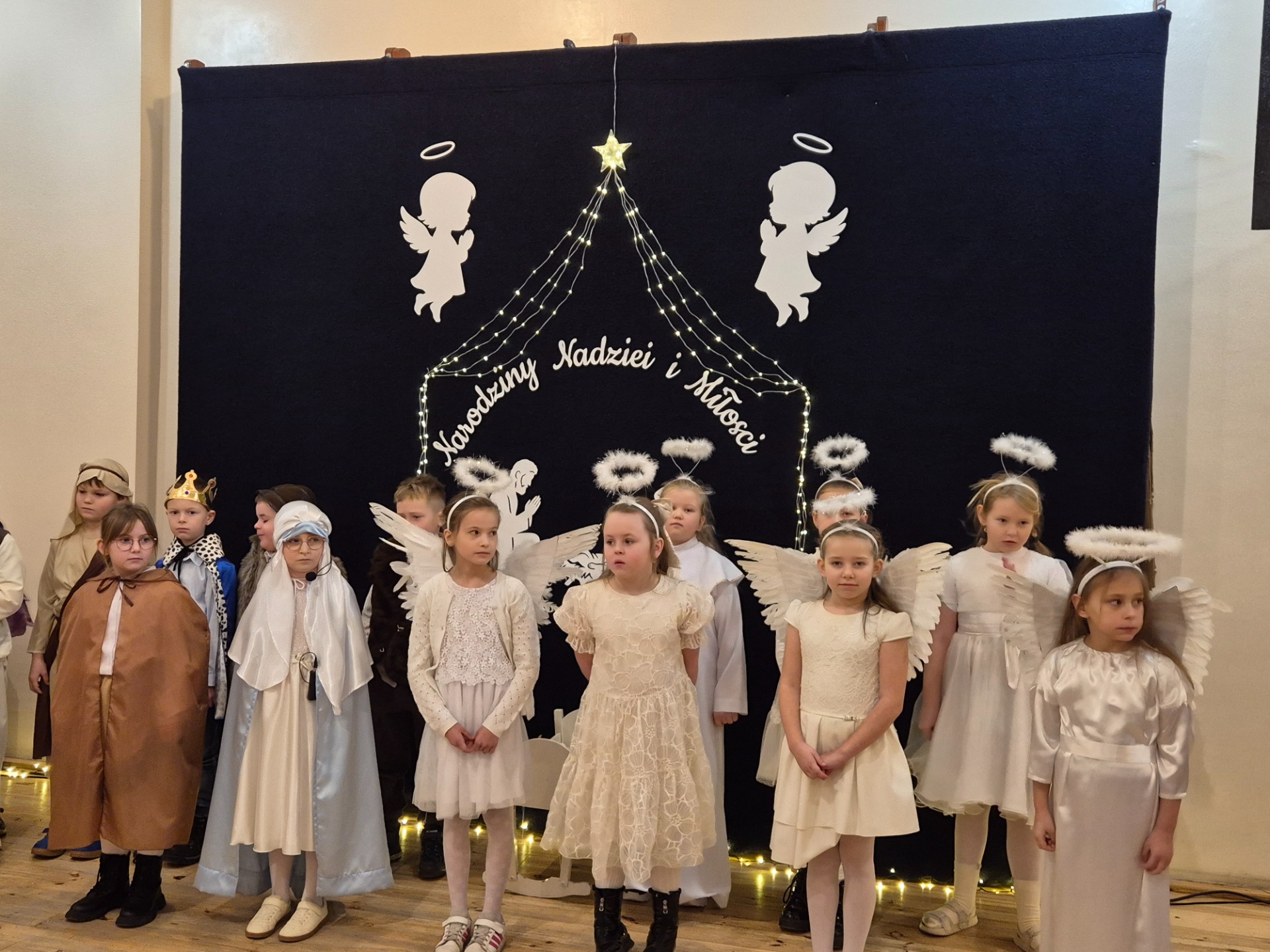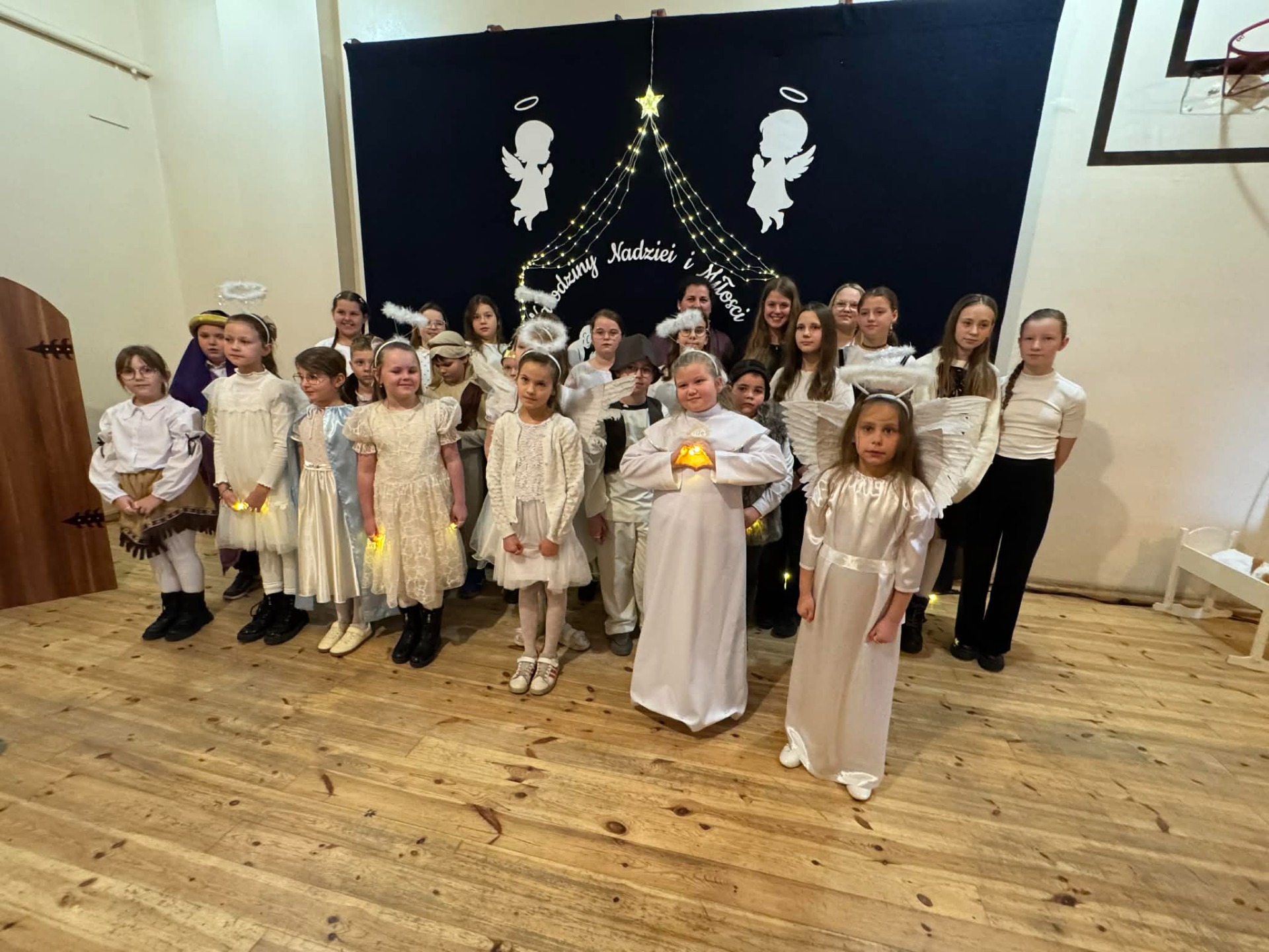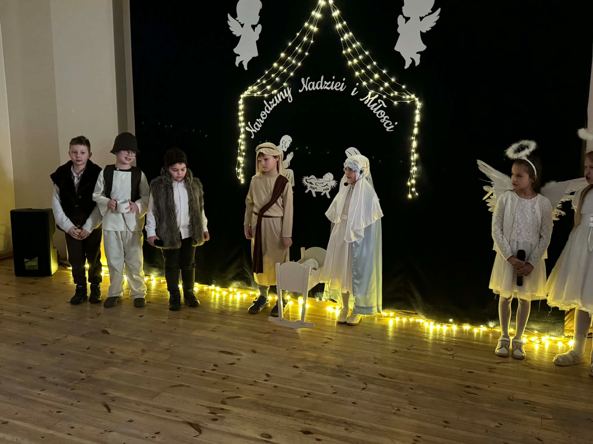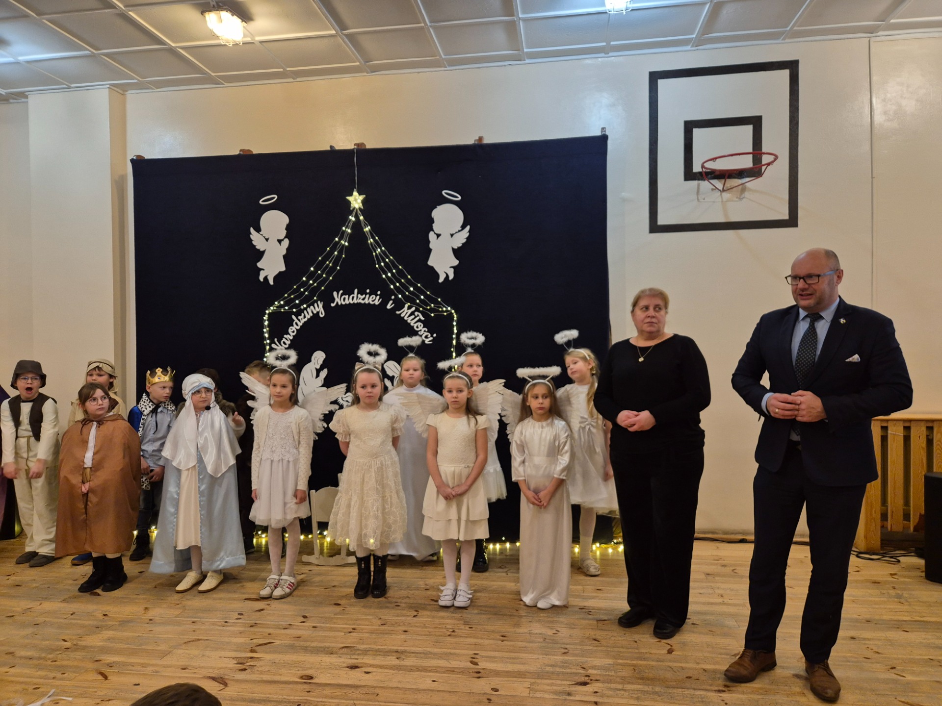 Dnia 18 grudnia 2025 roku, w naszej szkole odbyło się uroczyste przedstawienie jasełkowe przygotowane przez uczniów klas I–II pod kierunkiem pani Mileny Łukaszewskiej. Pani Dyrektor Magdalena Brząkała powitała przybyłych gości: Burmistrza Miasta i Gminy Gołańcz pana Roberta Torza, przewodniczącego Rady Miasta i Gminy Gołańcz pana Karola Brzezińskiego, proboszcza parafii pw. św. Andrzeja w Czeszewie księdza Macieja Musiała, przewodniczącą Rady Rodziców panią Emilię Musiał, rodziców i dziadków występujących uczniów oraz sympatyków naszej szkoły. Uczniowie z dużym zaangażowaniem zaprezentowali inscenizację ukazującą tradycyjną historię narodzin Jezusa Chrystusa. Dzieci wcieliły się w role m.in. aniołów, pasterzy, królów oraz Świętej Rodziny, wykazując się odwagą sceniczną i wysoką kulturą występu. Oliwia Kujawa i Gabriela Wojciechowska oraz uczennice z klasy 4 i 5 wsparły młodszych kolegów i koleżanki śpiewając dwie kolędy. Wydarzenie stworzyło wyjątkową, świąteczną atmosferę w społeczności szkolnej i spotkało się z bardzo ciepłym przyjęciem oraz uznaniem publiczności. Pani dyrektor podziękowała za występ uczniom i złożyła świąteczne życzenia. Do życzeń dołączyli się zaproszeni goście. Serdecznie dziękujemy rodzicom i ich pociechom za tak piękne przedstawienie jasełkowe.
