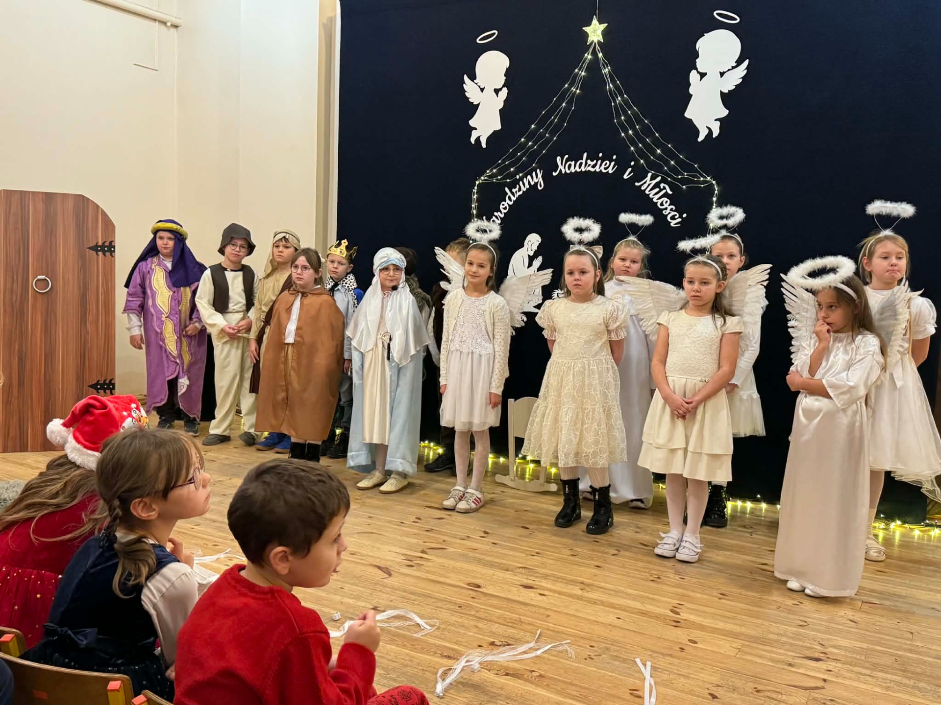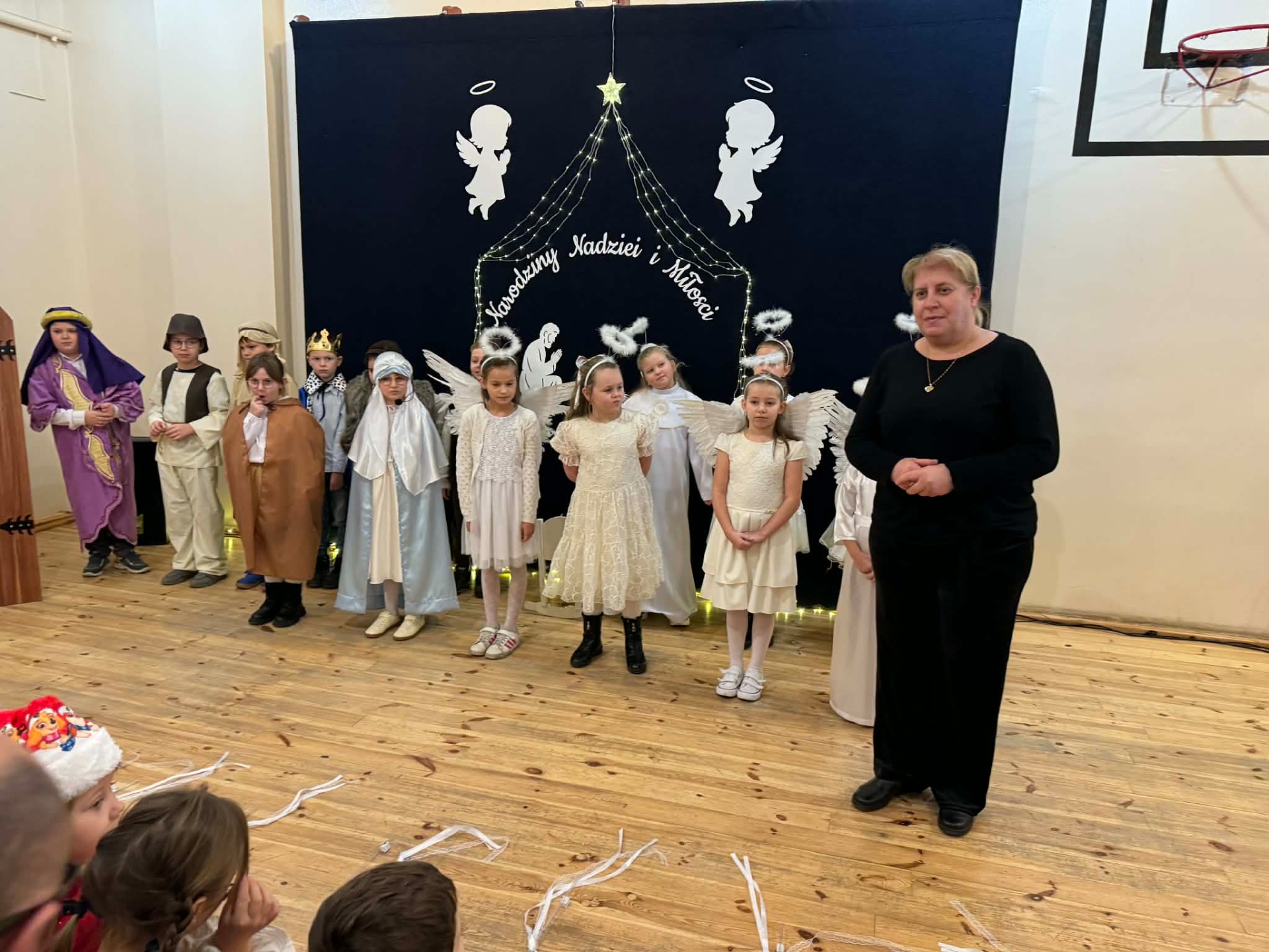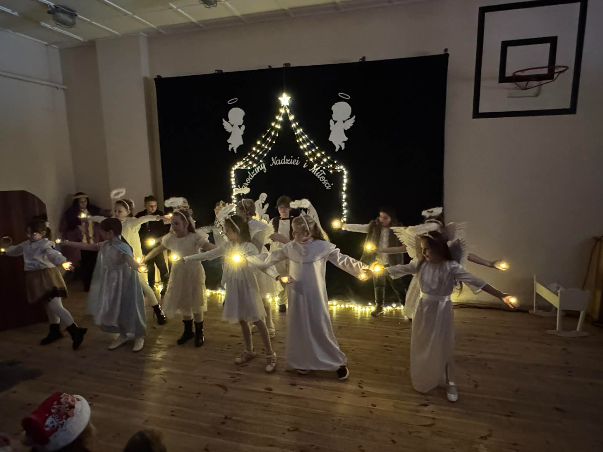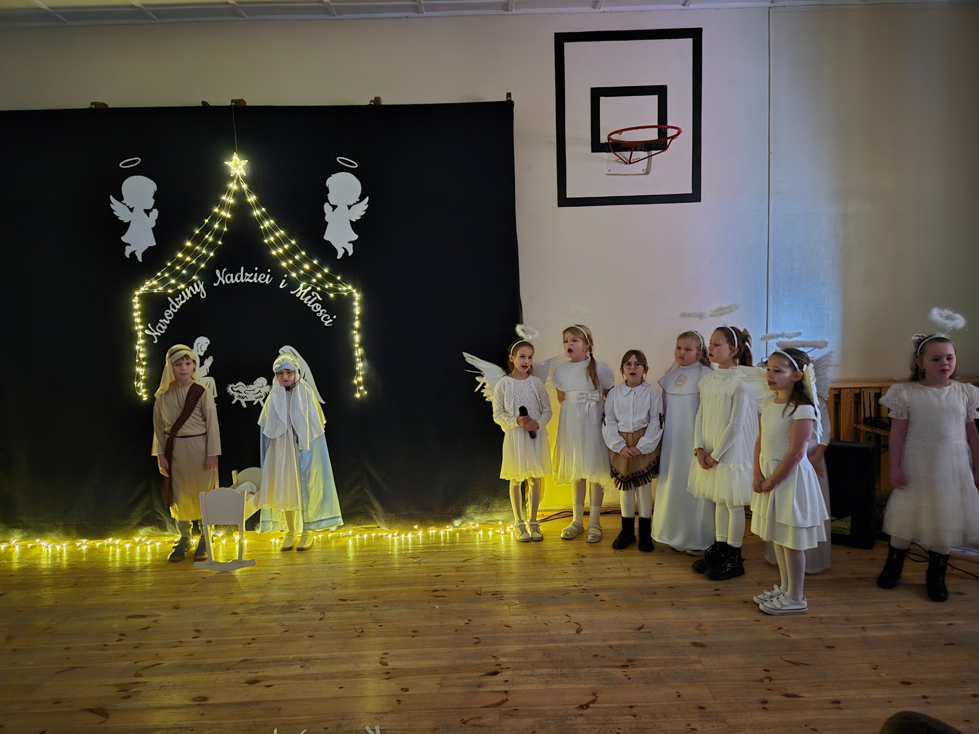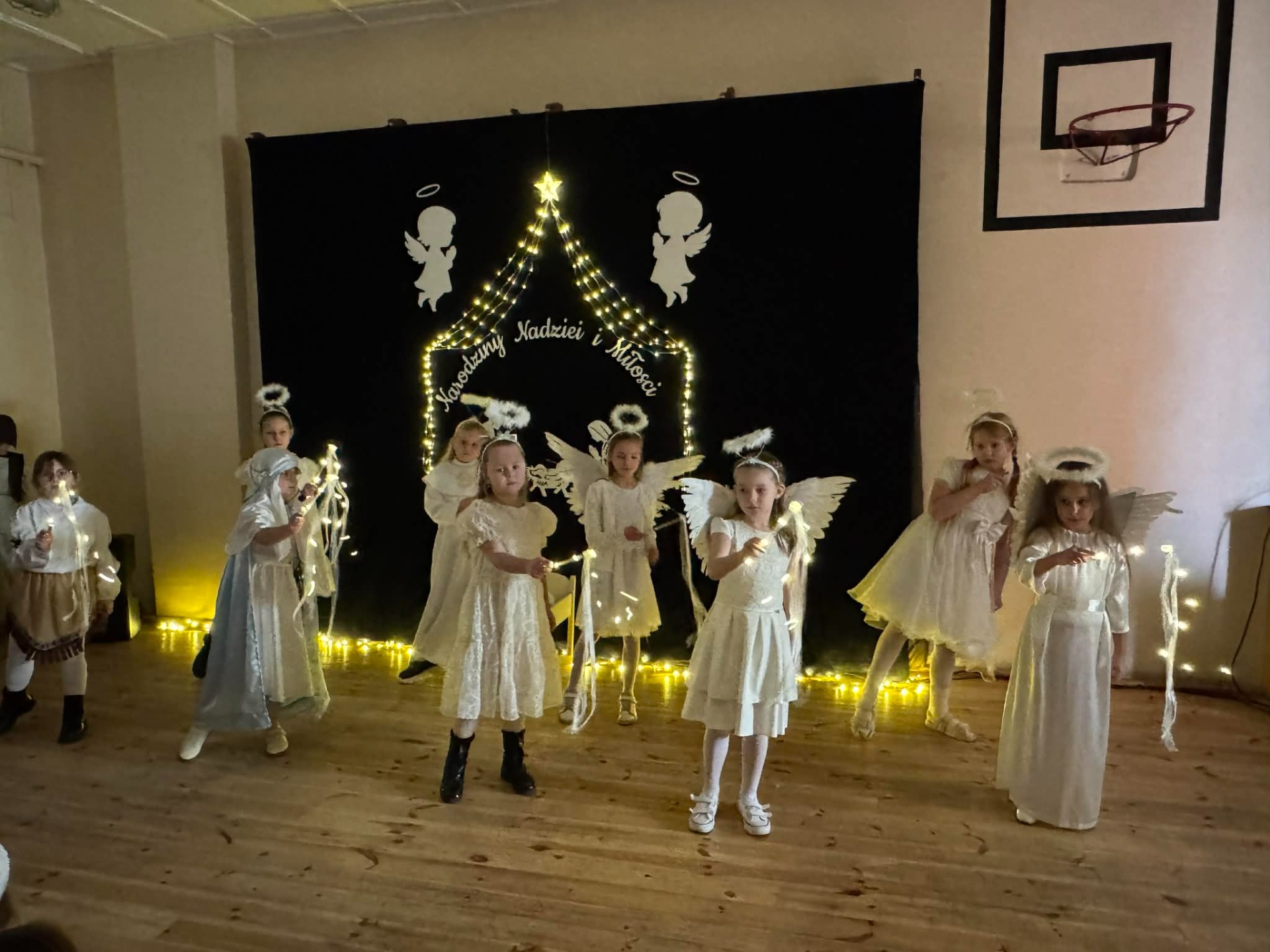 Dnia 18 grudnia 2025 roku, w naszej szkole odbyło się uroczyste przedstawienie jasełkowe przygotowane przez uczniów klas I–II pod kierunkiem pani Mileny Łukaszewskiej. Pani Dyrektor Magdalena Brząkała powitała przybyłych gości: Burmistrza Miasta i Gminy Gołańcz pana Roberta Torza, przewodniczącego Rady Miasta i Gminy Gołańcz pana Karola Brzezińskiego, proboszcza parafii pw. św. Andrzeja w Czeszewie księdza Macieja Musiała, przewodniczącą Rady Rodziców panią Emilię Musiał, rodziców i dziadków występujących uczniów oraz sympatyków naszej szkoły. Uczniowie z dużym zaangażowaniem zaprezentowali inscenizację ukazującą tradycyjną historię narodzin Jezusa Chrystusa. Dzieci wcieliły się w role m.in. aniołów, pasterzy, królów oraz Świętej Rodziny, wykazując się odwagą sceniczną i wysoką kulturą występu. Oliwia Kujawa i Gabriela Wojciechowska oraz uczennice z klasy 4 i 5 wsparły młodszych kolegów i koleżanki śpiewając dwie kolędy. Wydarzenie stworzyło wyjątkową, świąteczną atmosferę w społeczności szkolnej i spotkało się z bardzo ciepłym przyjęciem oraz uznaniem publiczności. Pani dyrektor podziękowała za występ uczniom i złożyła świąteczne życzenia. Do życzeń dołączyli się zaproszeni goście. Serdecznie dziękujemy rodzicom i ich pociechom za tak piękne przedstawienie jasełkowe.