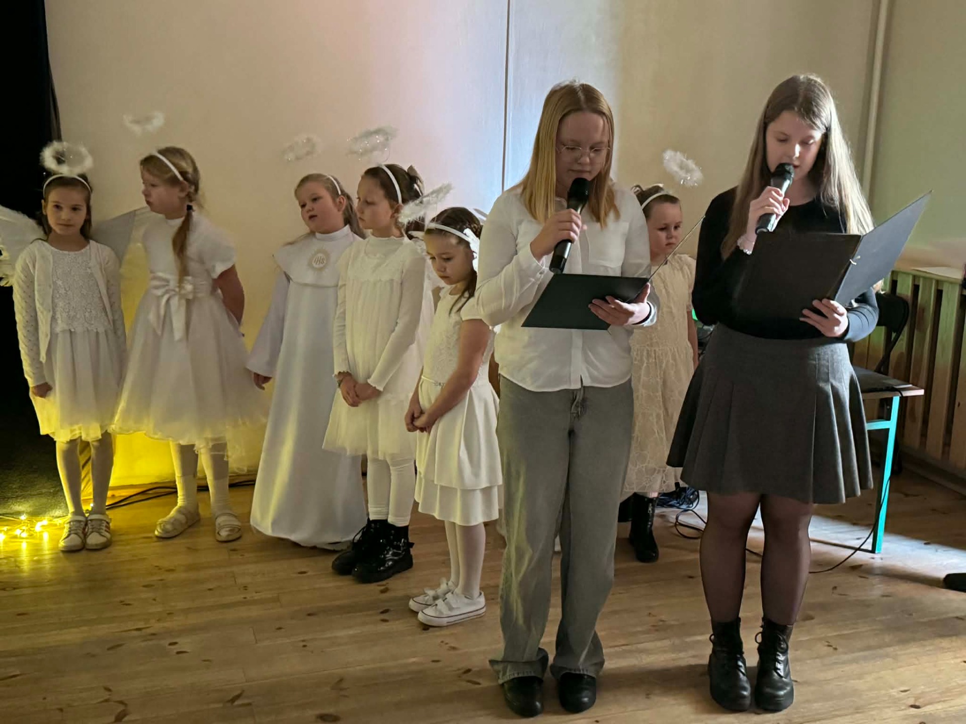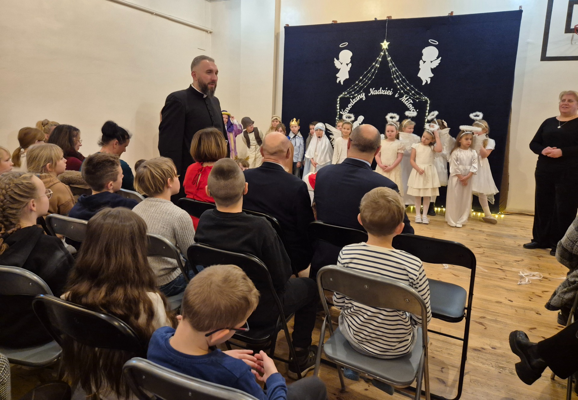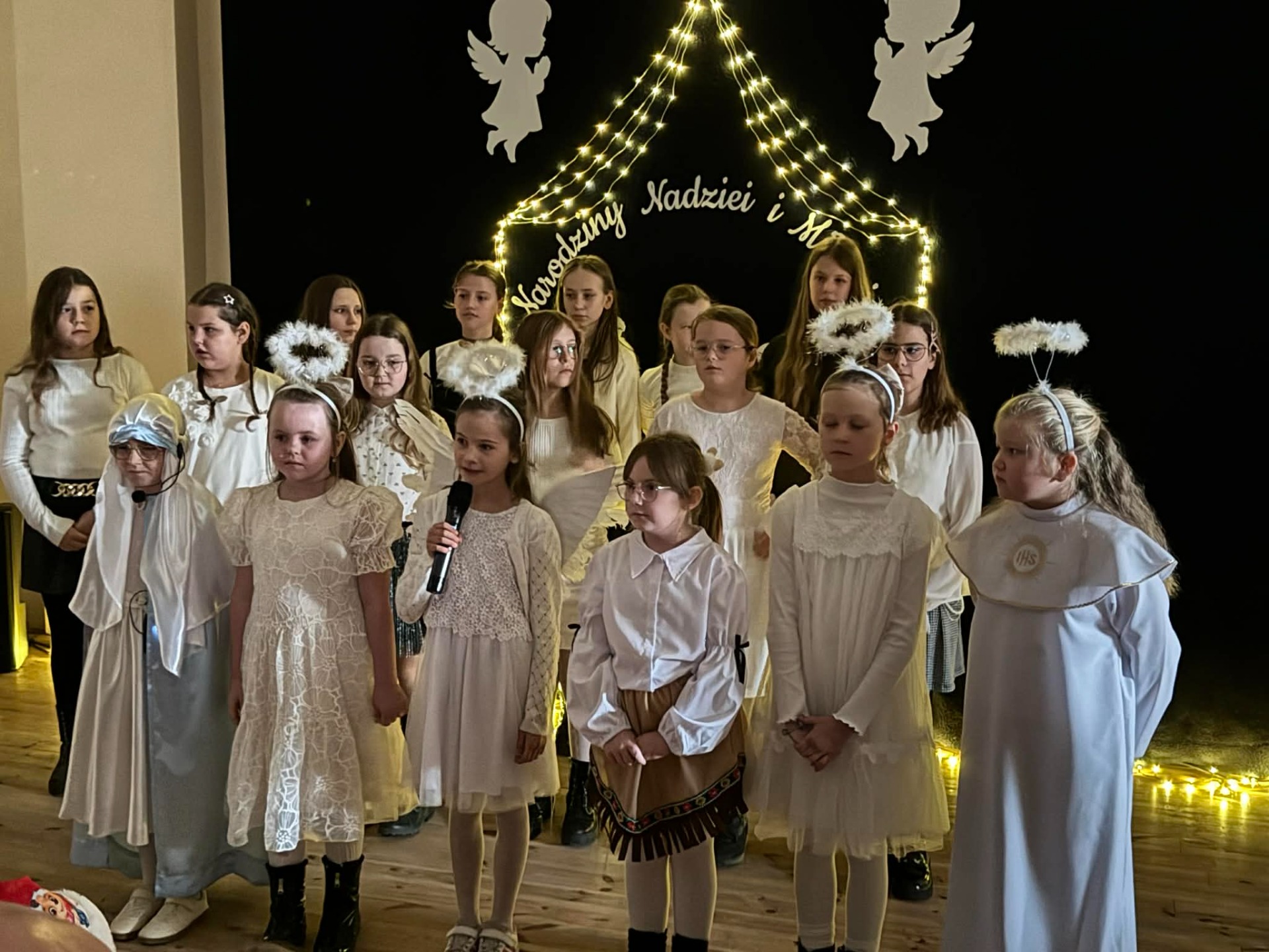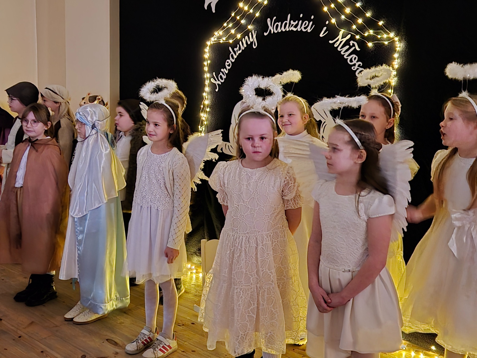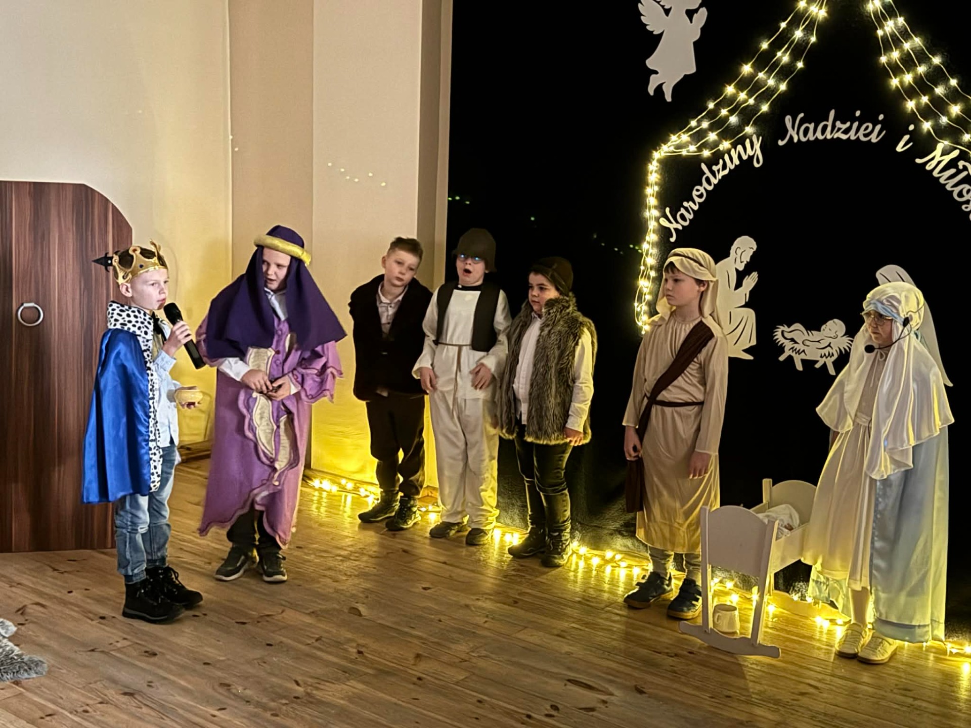 Dnia 18 grudnia 2025 roku, w naszej szkole odbyło się uroczyste przedstawienie jasełkowe przygotowane przez uczniów klas I–II pod kierunkiem pani Mileny Łukaszewskiej. Pani Dyrektor Magdalena Brząkała powitała przybyłych gości: Burmistrza Miasta i Gminy Gołańcz pana Roberta Torza, przewodniczącego Rady Miasta i Gminy Gołańcz pana Karola Brzezińskiego, proboszcza parafii pw. św. Andrzeja w Czeszewie księdza Macieja Musiała, przewodniczącą Rady Rodziców panią Emilię Musiał, rodziców i dziadków występujących uczniów oraz sympatyków naszej szkoły. Uczniowie z dużym zaangażowaniem zaprezentowali inscenizację ukazującą tradycyjną historię narodzin Jezusa Chrystusa. Dzieci wcieliły się w role m.in. aniołów, pasterzy, królów oraz Świętej Rodziny, wykazując się odwagą sceniczną i wysoką kulturą występu. Oliwia Kujawa i Gabriela Wojciechowska oraz uczennice z klasy 4 i 5 wsparły młodszych kolegów i koleżanki śpiewając dwie kolędy. Wydarzenie stworzyło wyjątkową, świąteczną atmosferę w społeczności szkolnej i spotkało się z bardzo ciepłym przyjęciem oraz uznaniem publiczności. Pani dyrektor podziękowała za występ uczniom i złożyła świąteczne życzenia. Do życzeń dołączyli się zaproszeni goście. Serdecznie dziękujemy rodzicom i ich pociechom za tak piękne przedstawienie jasełkowe.